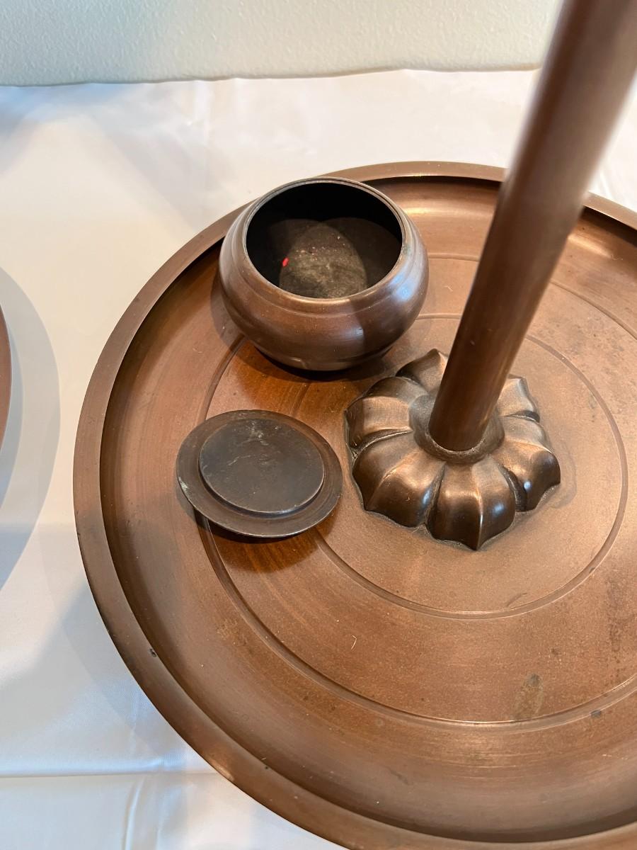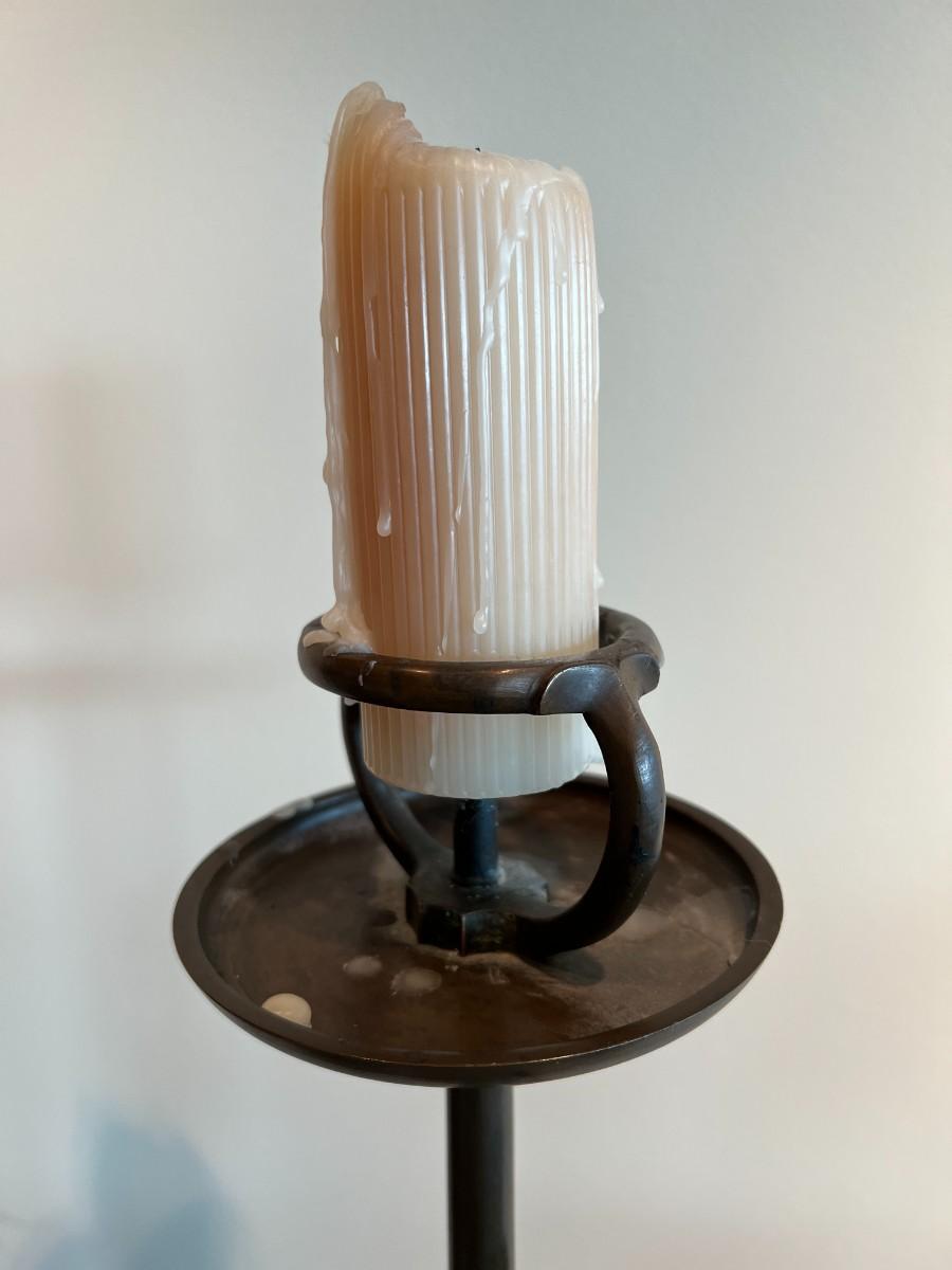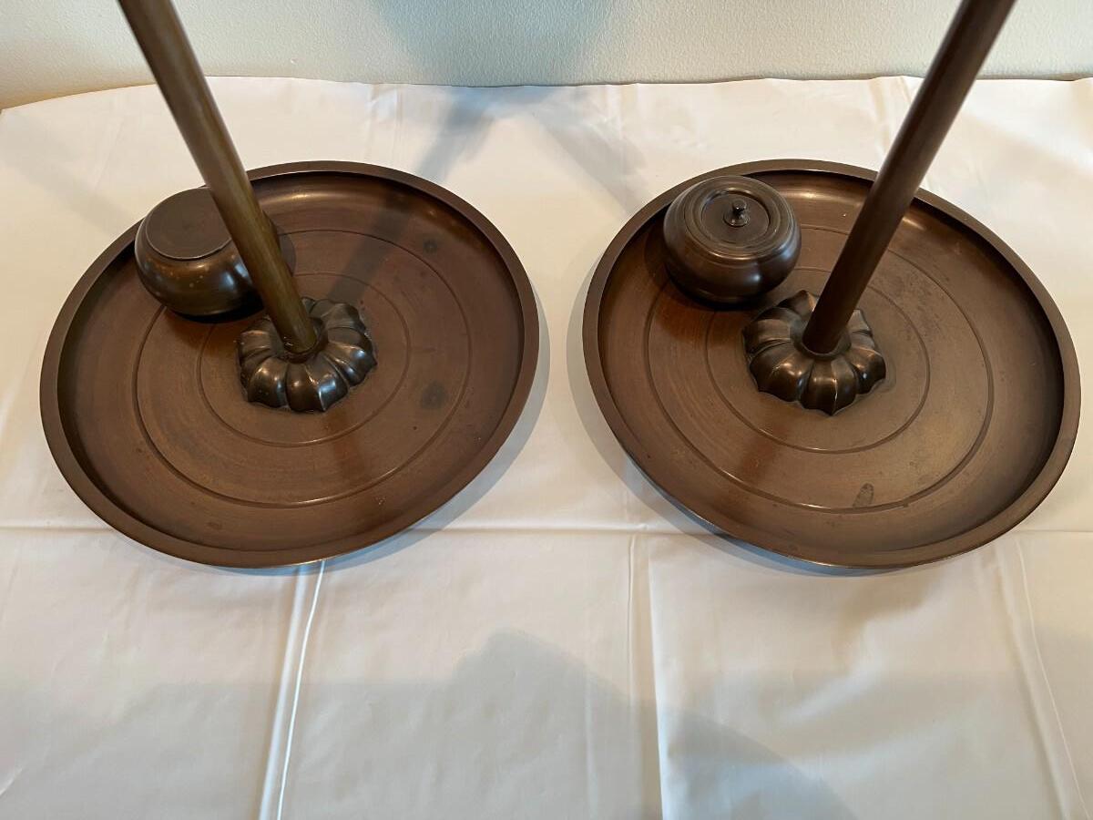 Pair of Tall Vintage Metal Candlesticks with Accessories