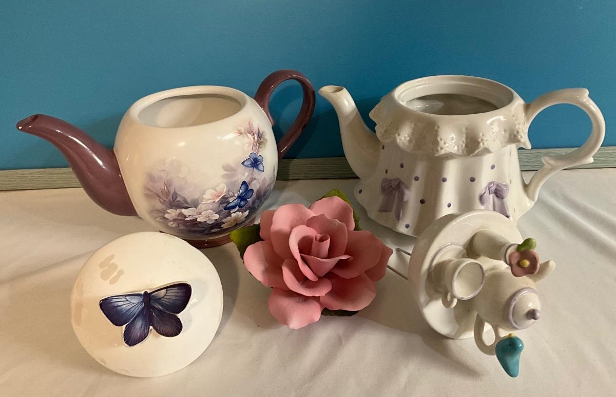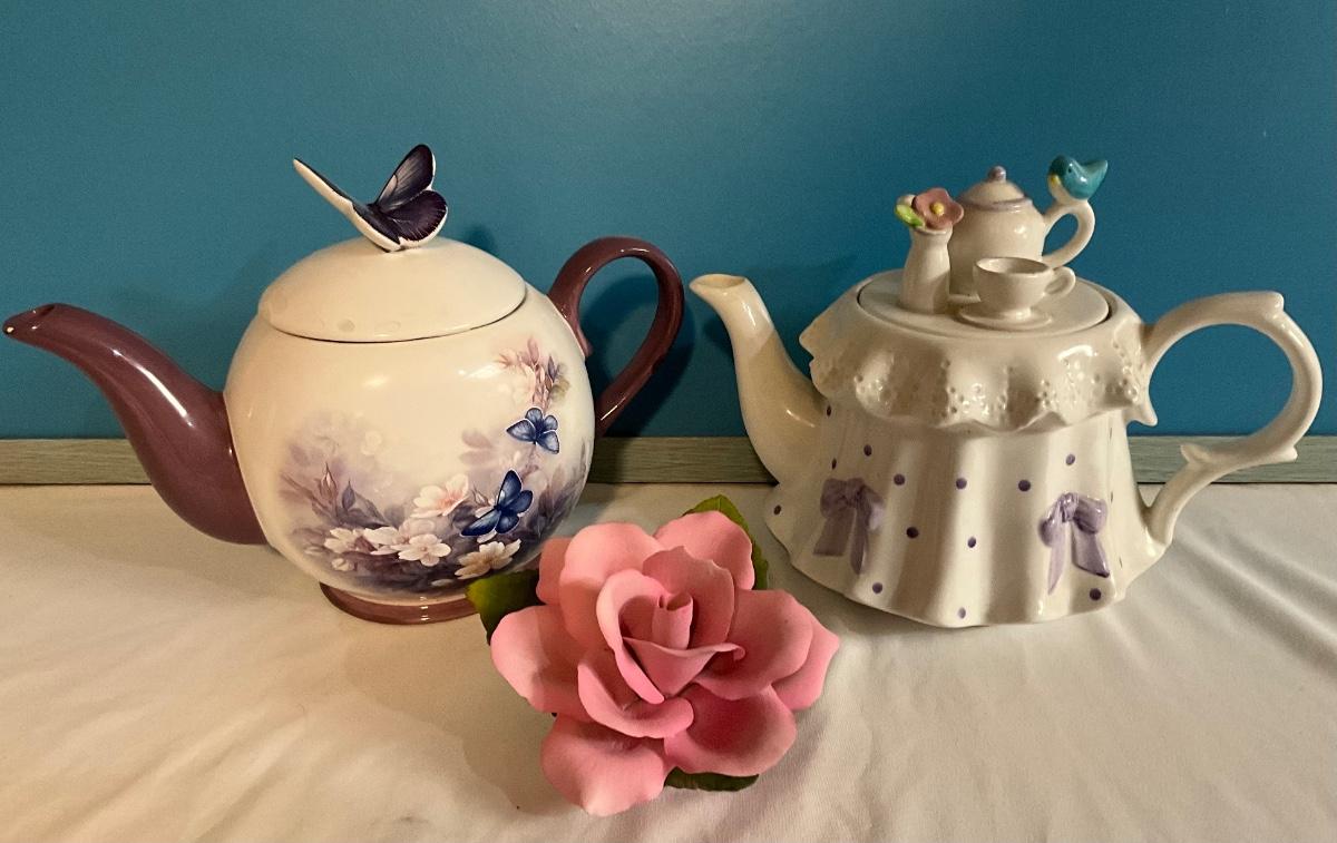 Vintage Tea Party, hand painted pots, Vintage Pink Capodimonte Rose