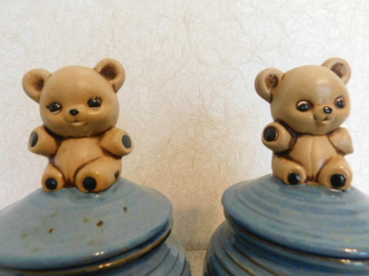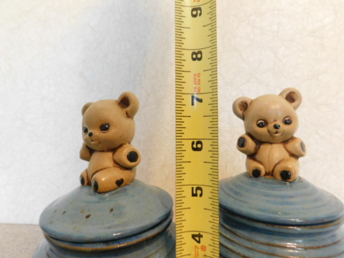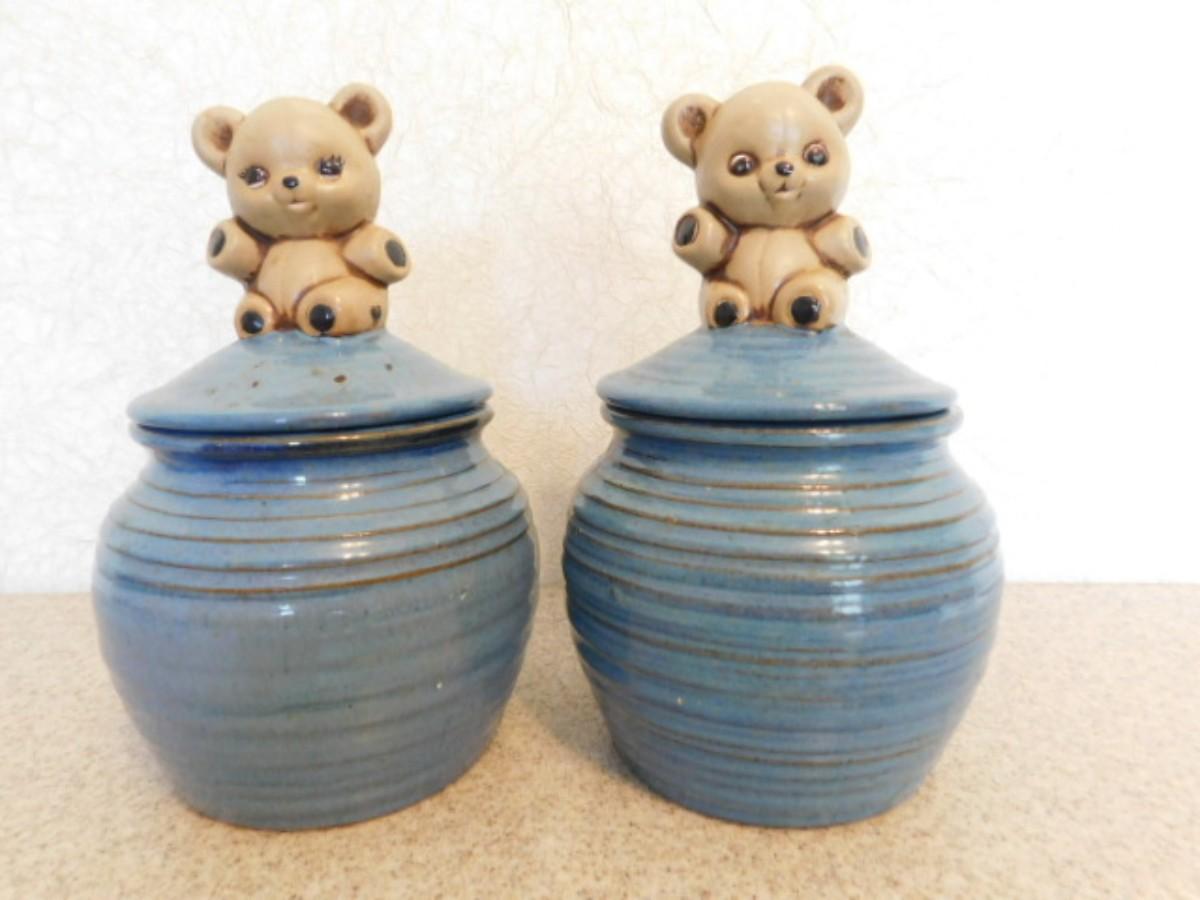 Pair of Teddy Bear Boy and Girl Pottery Jars Signed by Artist