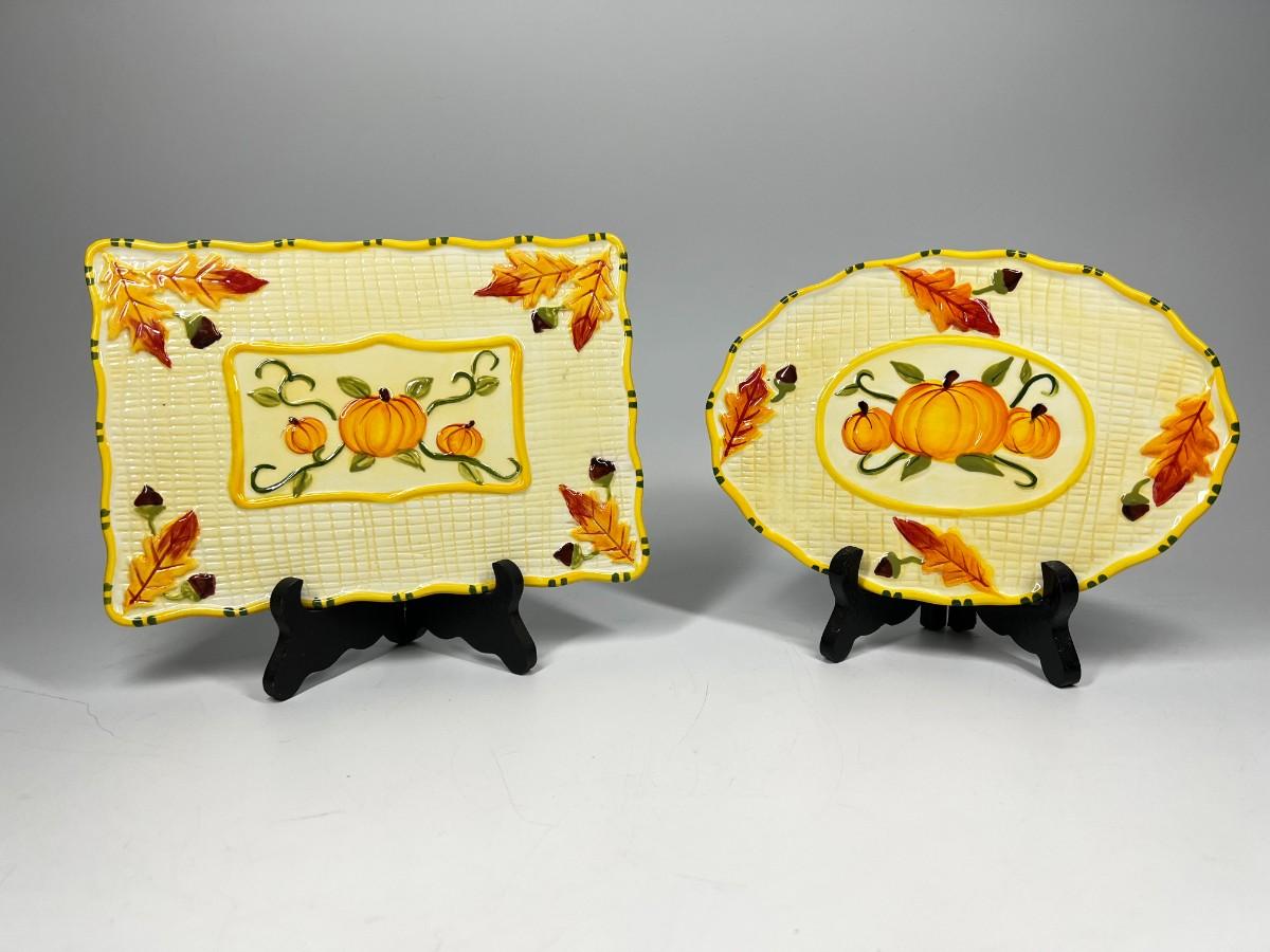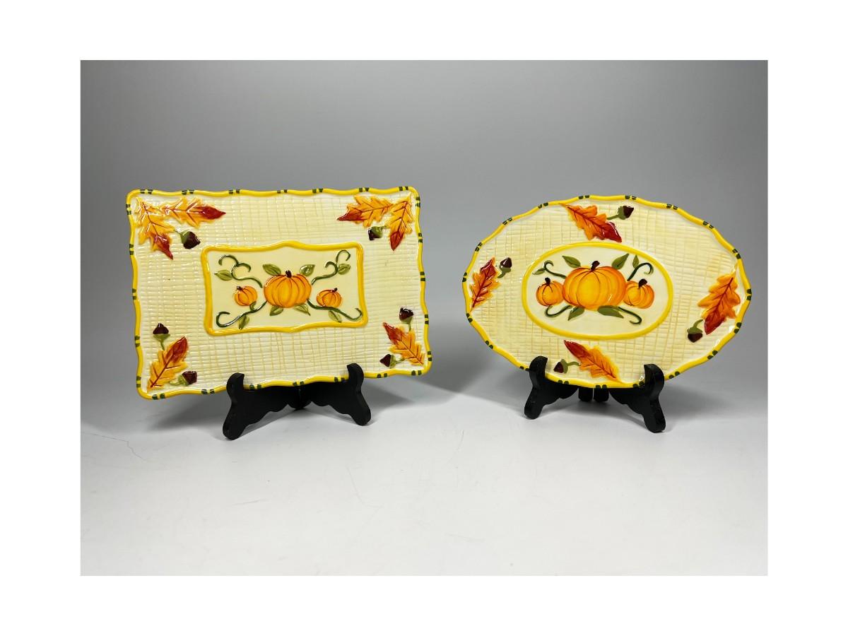 Pair of Temptations by Tara Seasonal Pumpkin Serving Tray Dishes