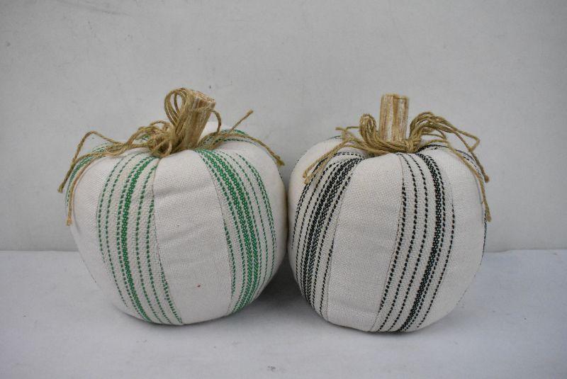 Thanksgiving Multicolor Striped Fabric Pumpkins Decoration (8.5 in), Set of 2 - New
