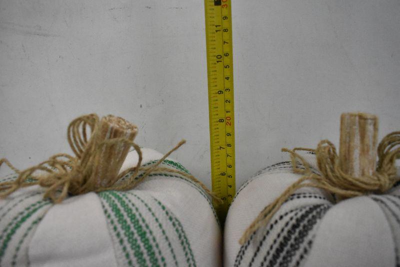 Pair of Thanksgiving Multicolor Striped Fabric Pumpkins Decoration (8.5") - New