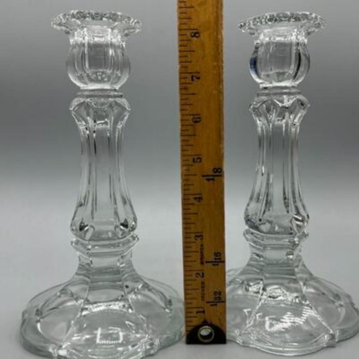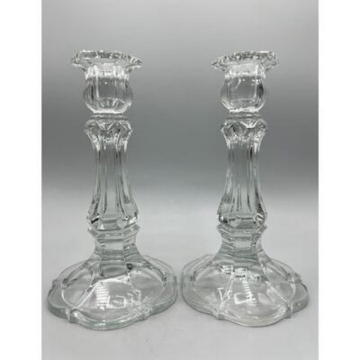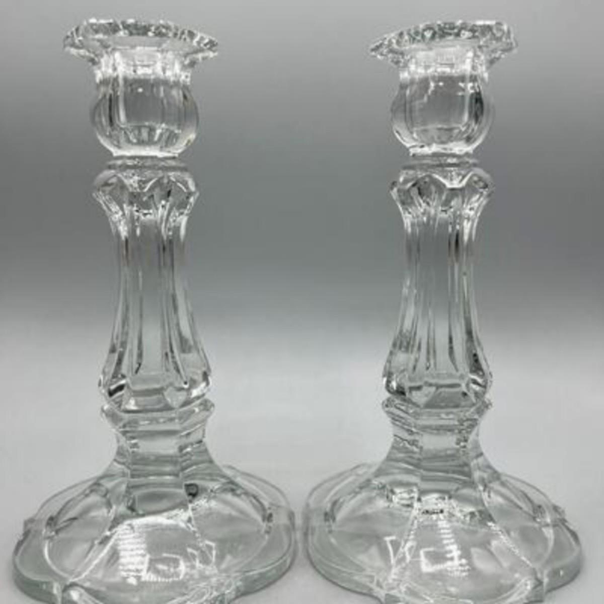 Pair of Thick Heavy Clear Glass Candle Stick Holders