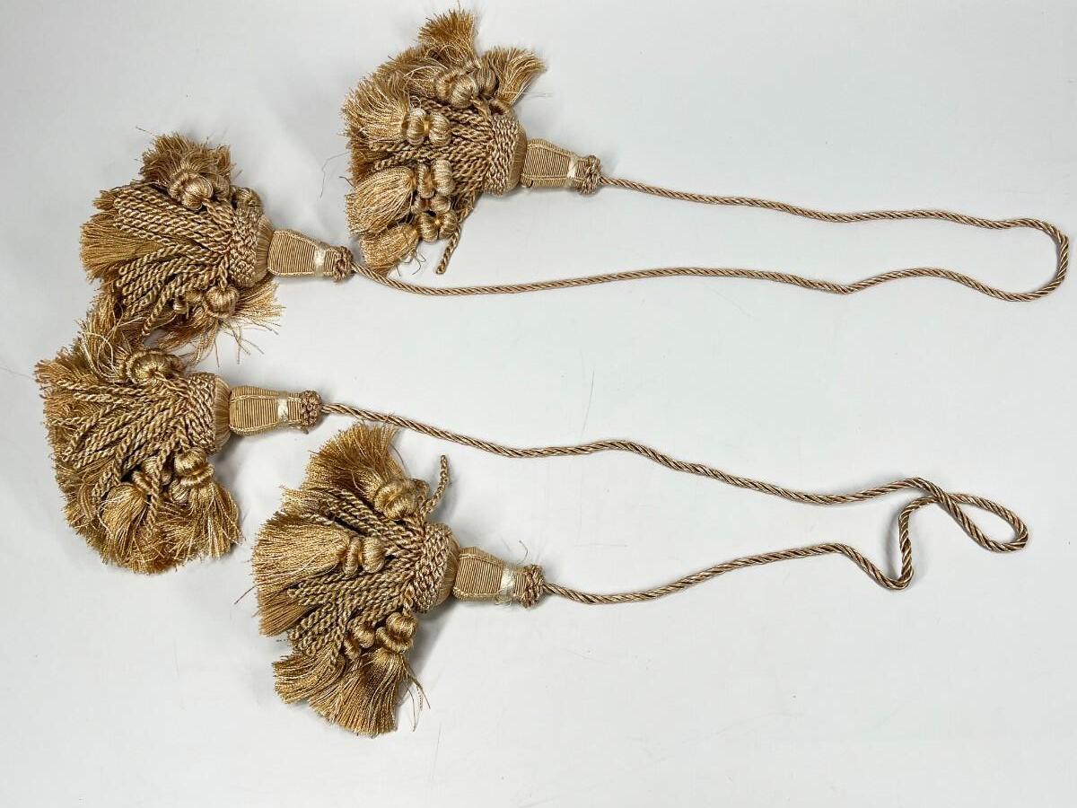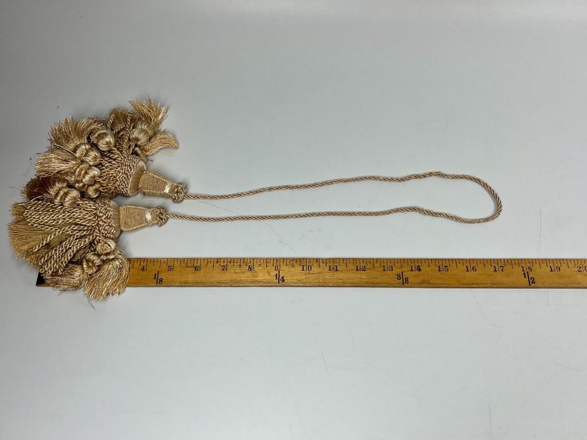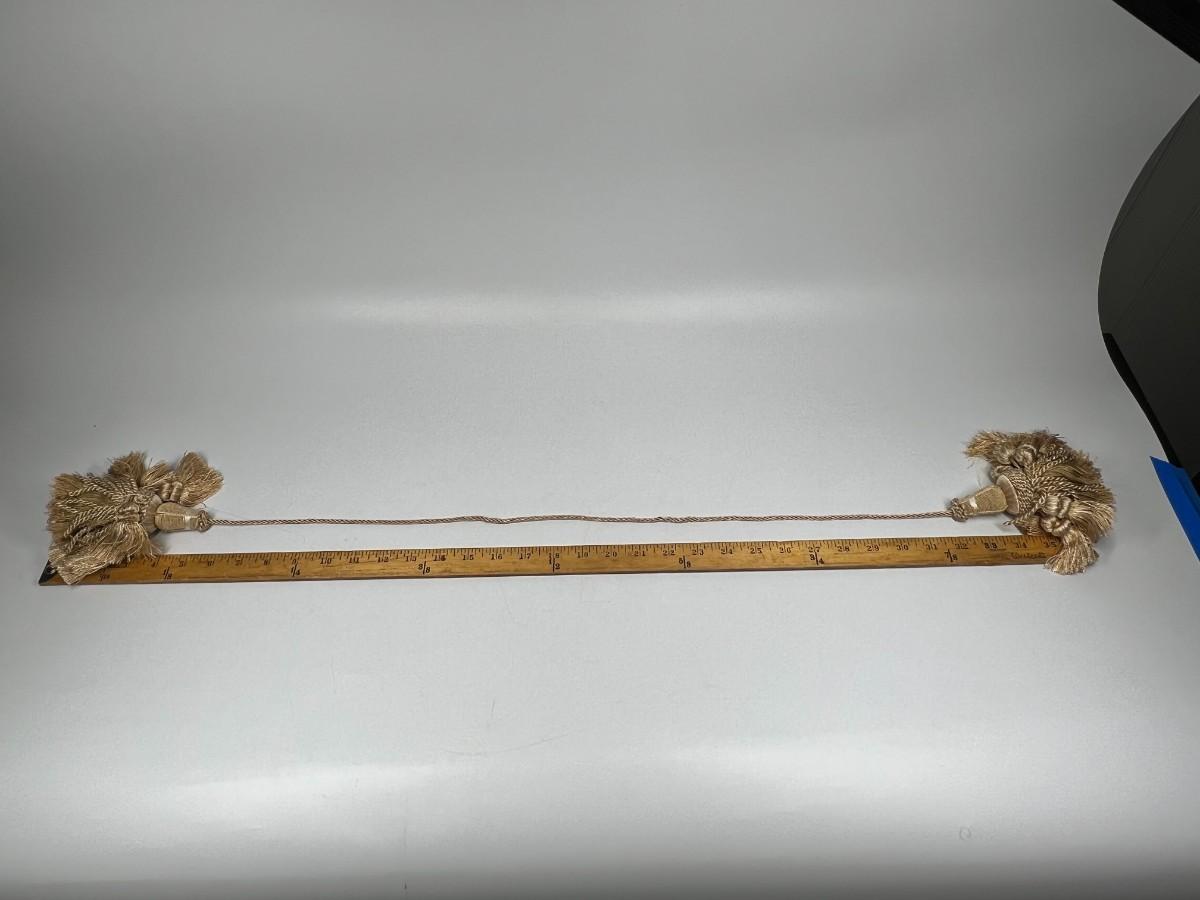 Pair of Thin Nylon Light Brown Home Decor Curtain Accent Tie Back Tassels, there is no significant damage to the tassels and is in good useable condition. Check pictures for more details and for sizing.