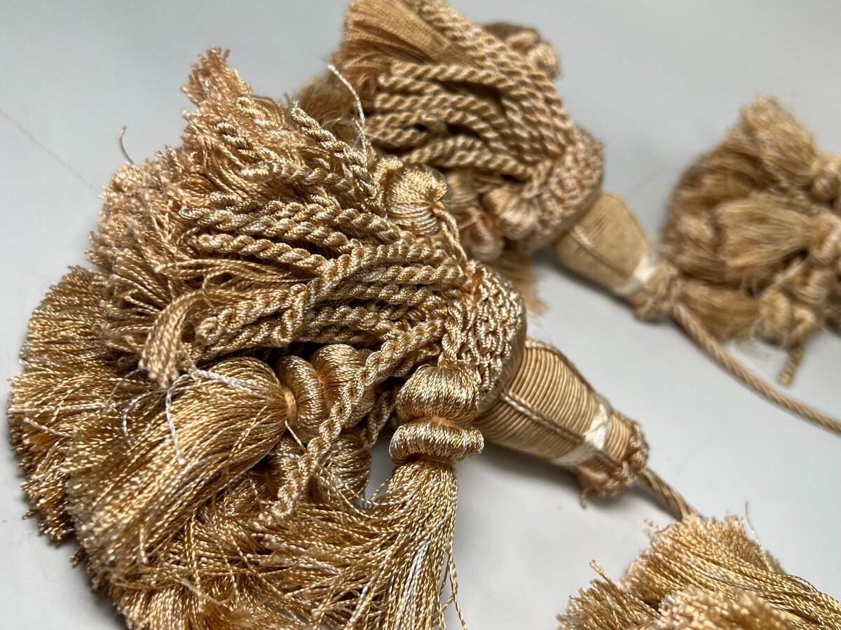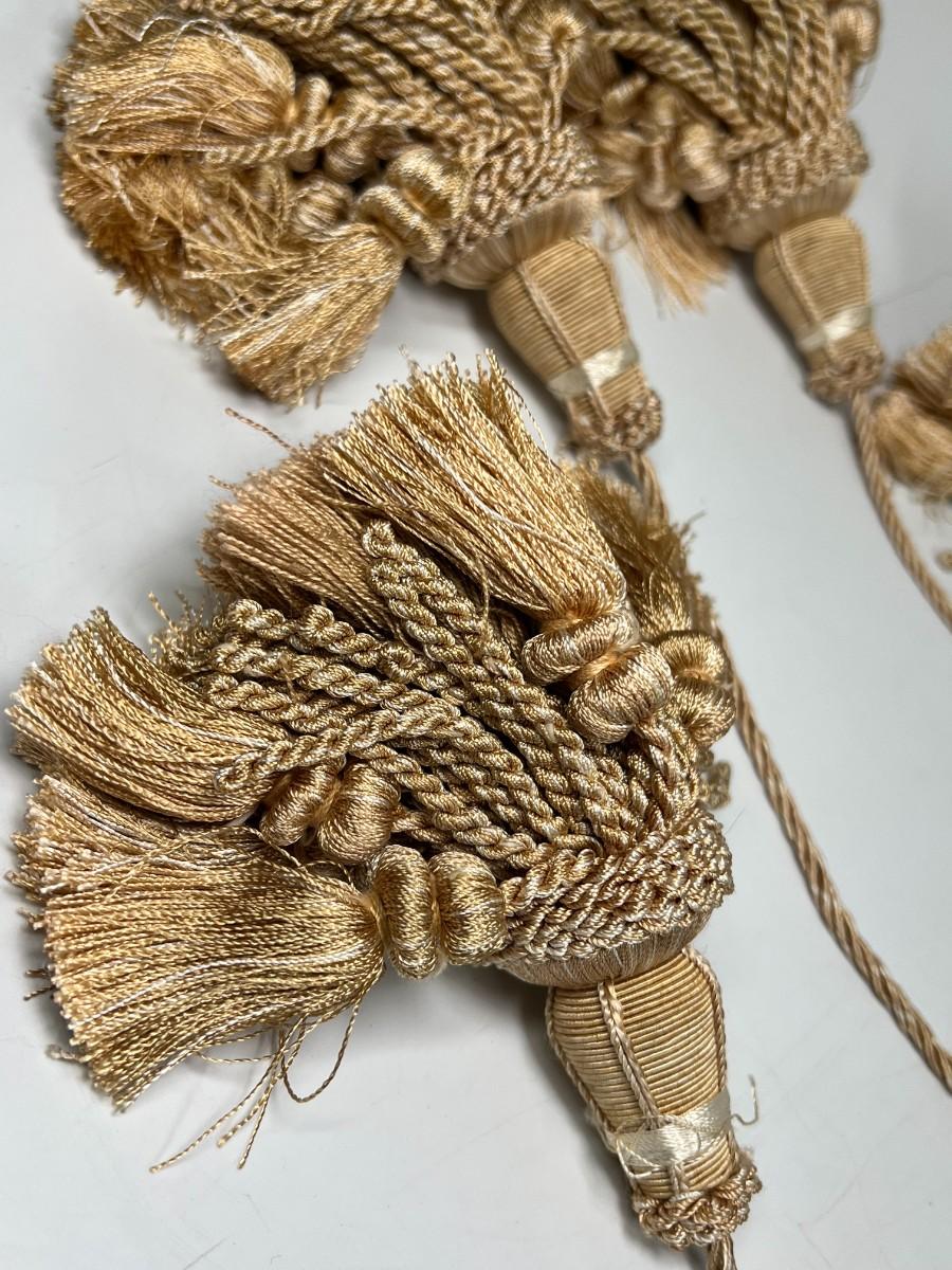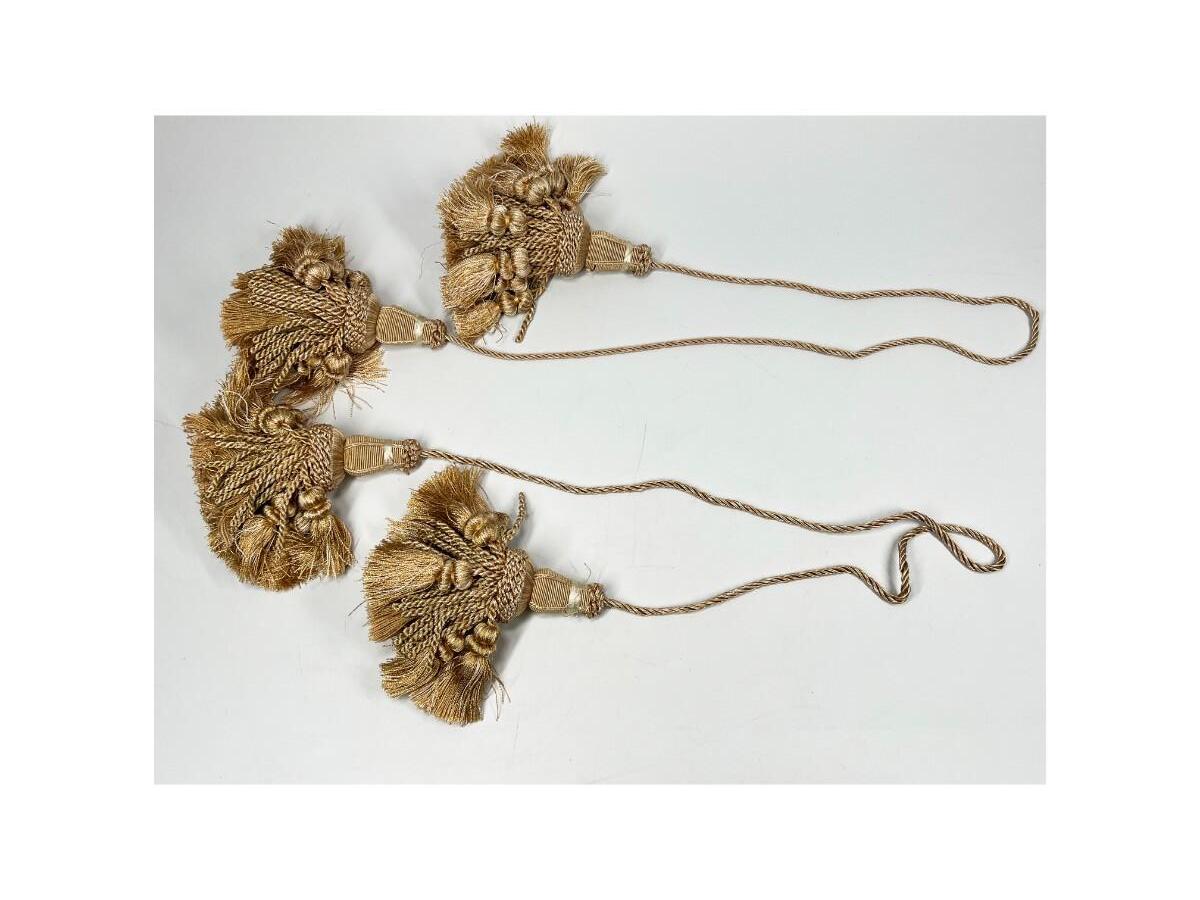 Pair of Thin Nylon Light Brown Home Decor Curtain Accent Tie Back Tassels, there is no significant damage to the tassels and is in good useable condition. Check pictures for more details and for sizing.