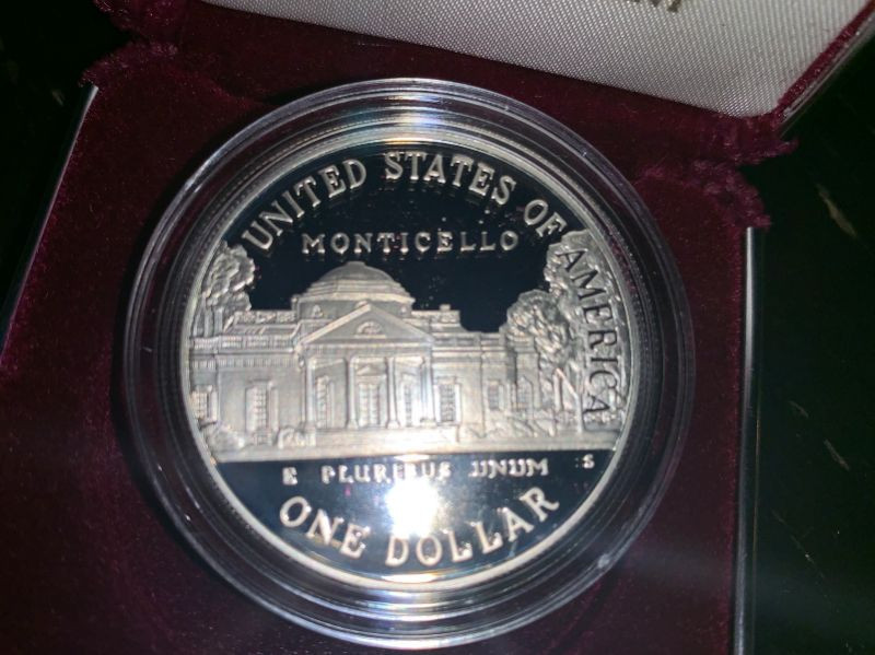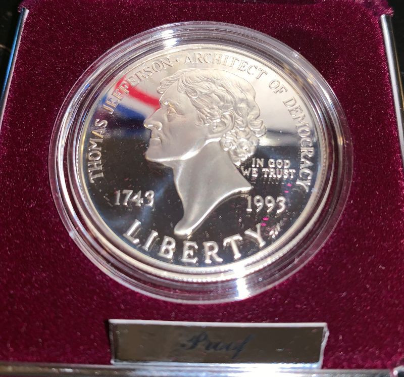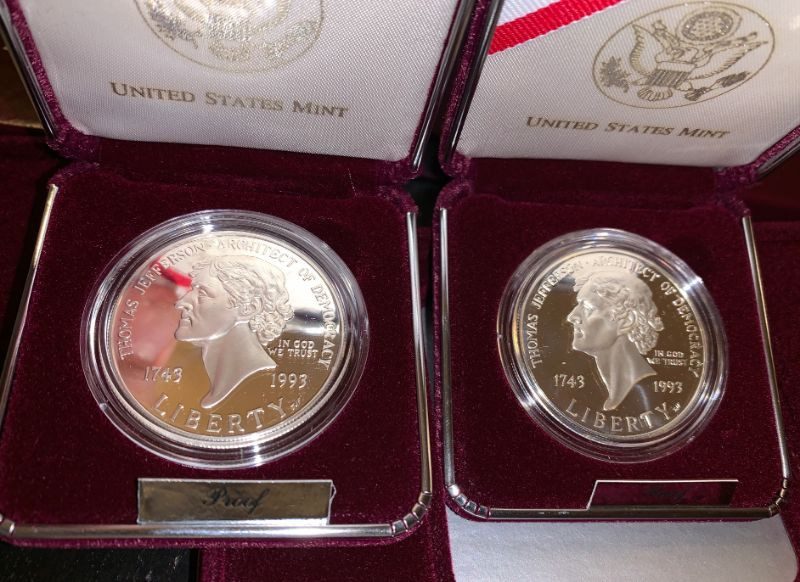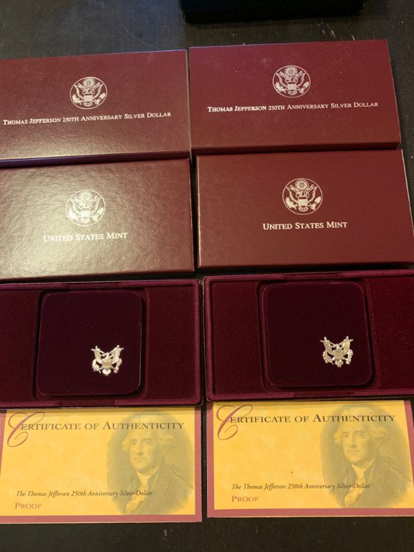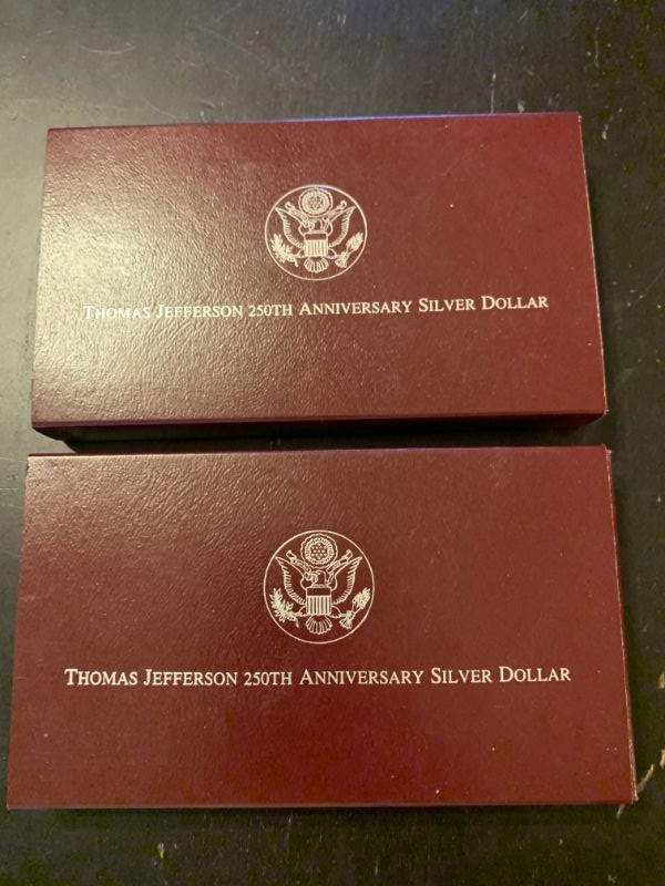 Pair of Thomas Jefferson 250th anniversary Silver Dollar Coins