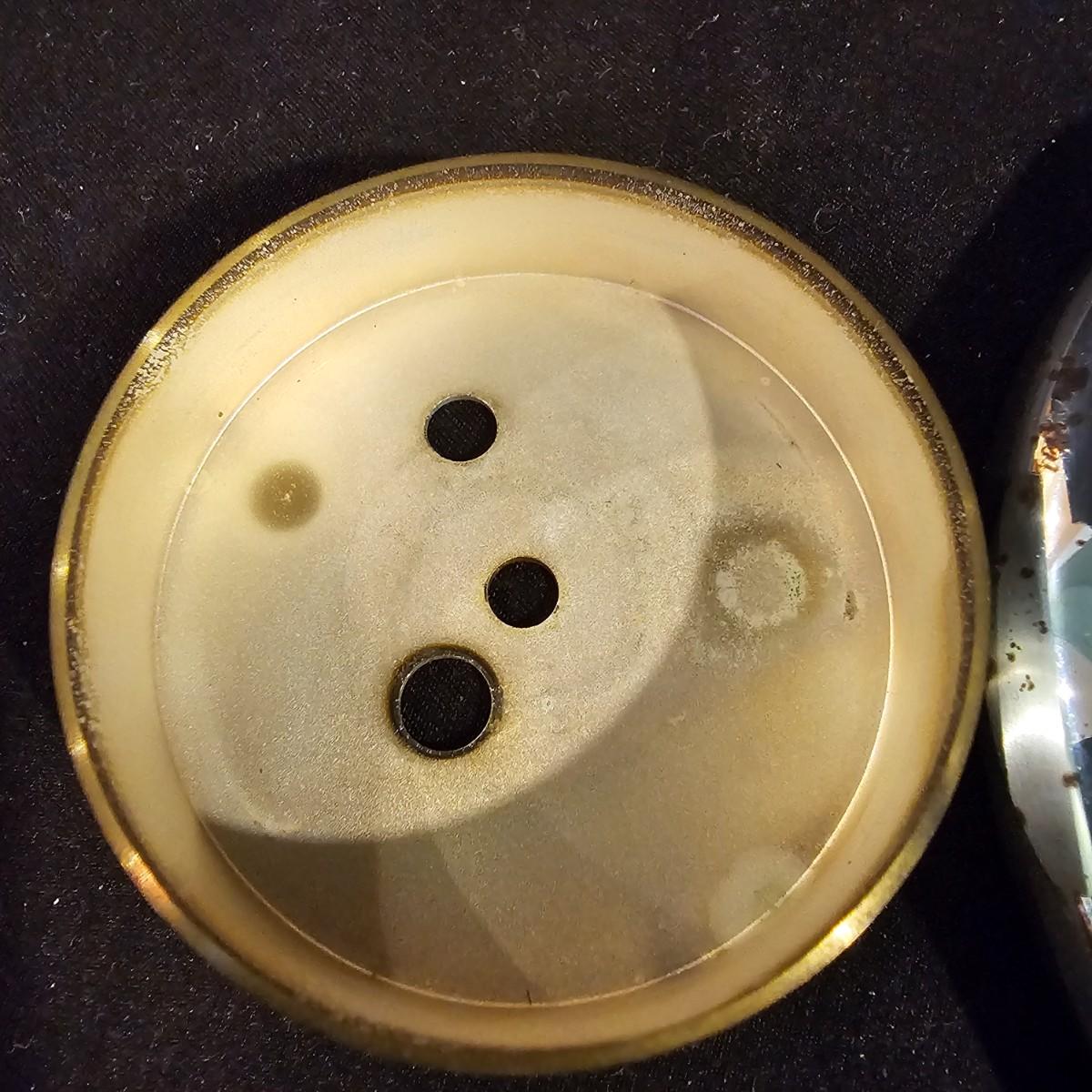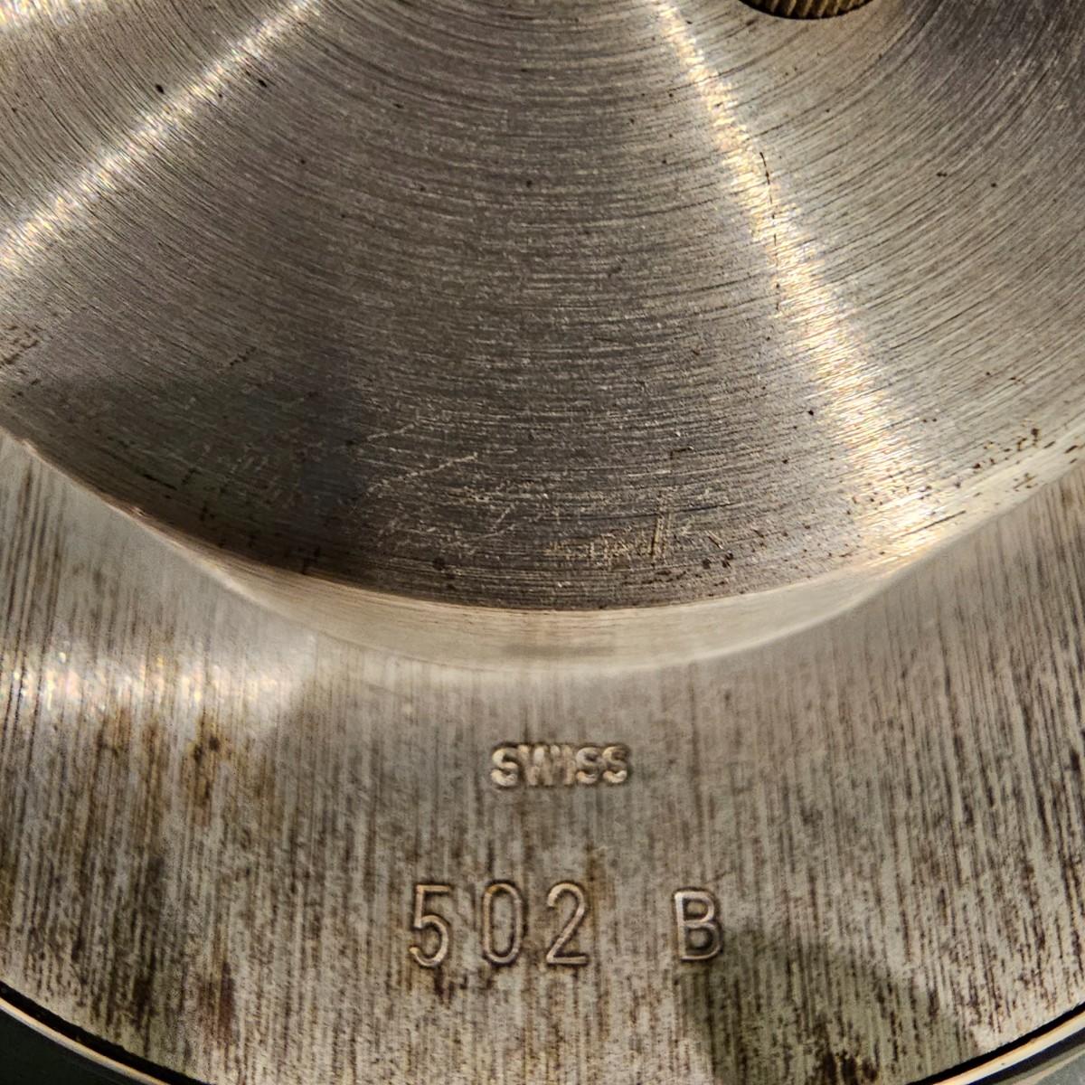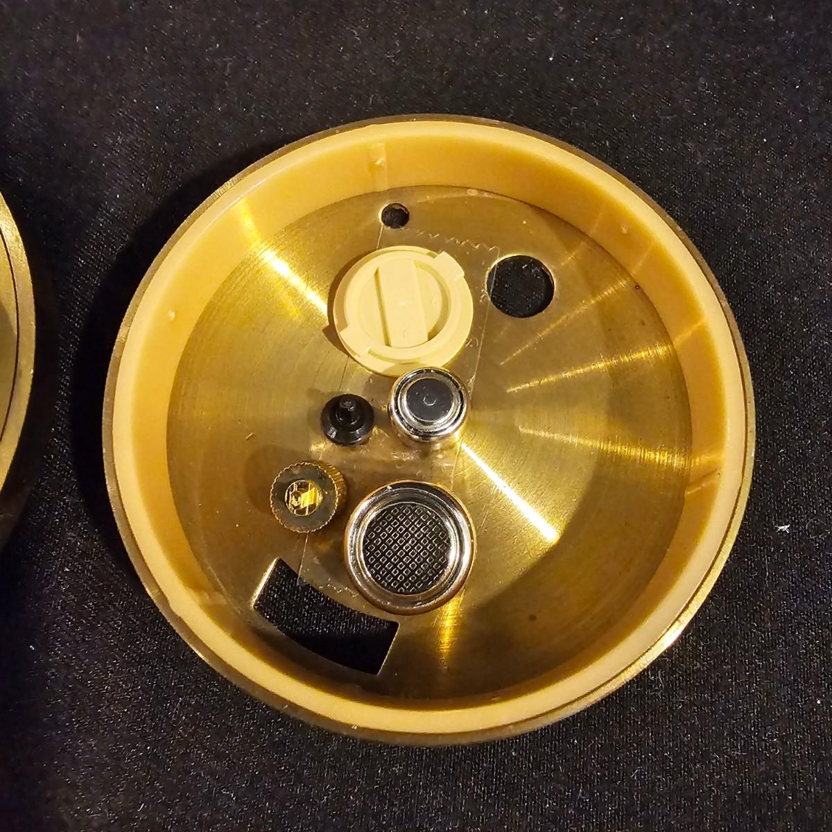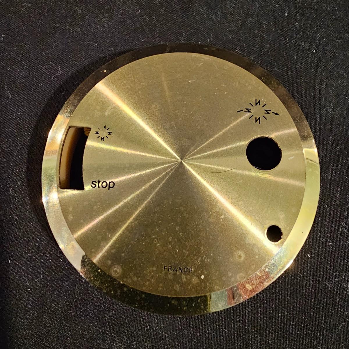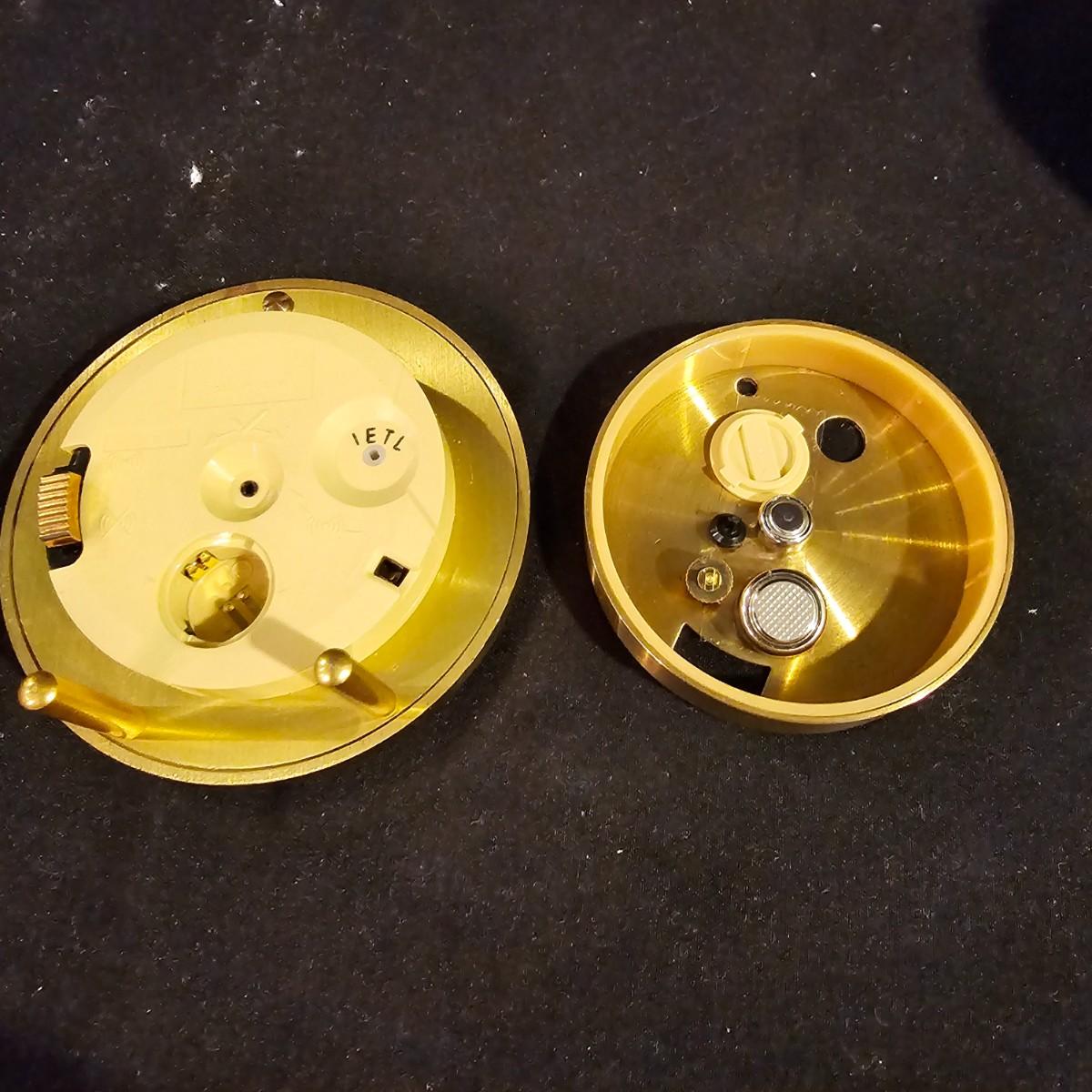 A pair of small battery operated table clocks by Tiffany & Co. Smaller item is brass, measures 2.75" x 1". Some small pieces in bag go with the larger silver colored clock; it measures 4.25" x 1.25" and has machined aluminum base. Silver colored clock has black spots, see pictures. Neither clock currently running, probably need batteries. See photos for details. Shipping available.