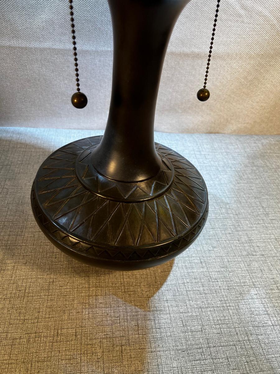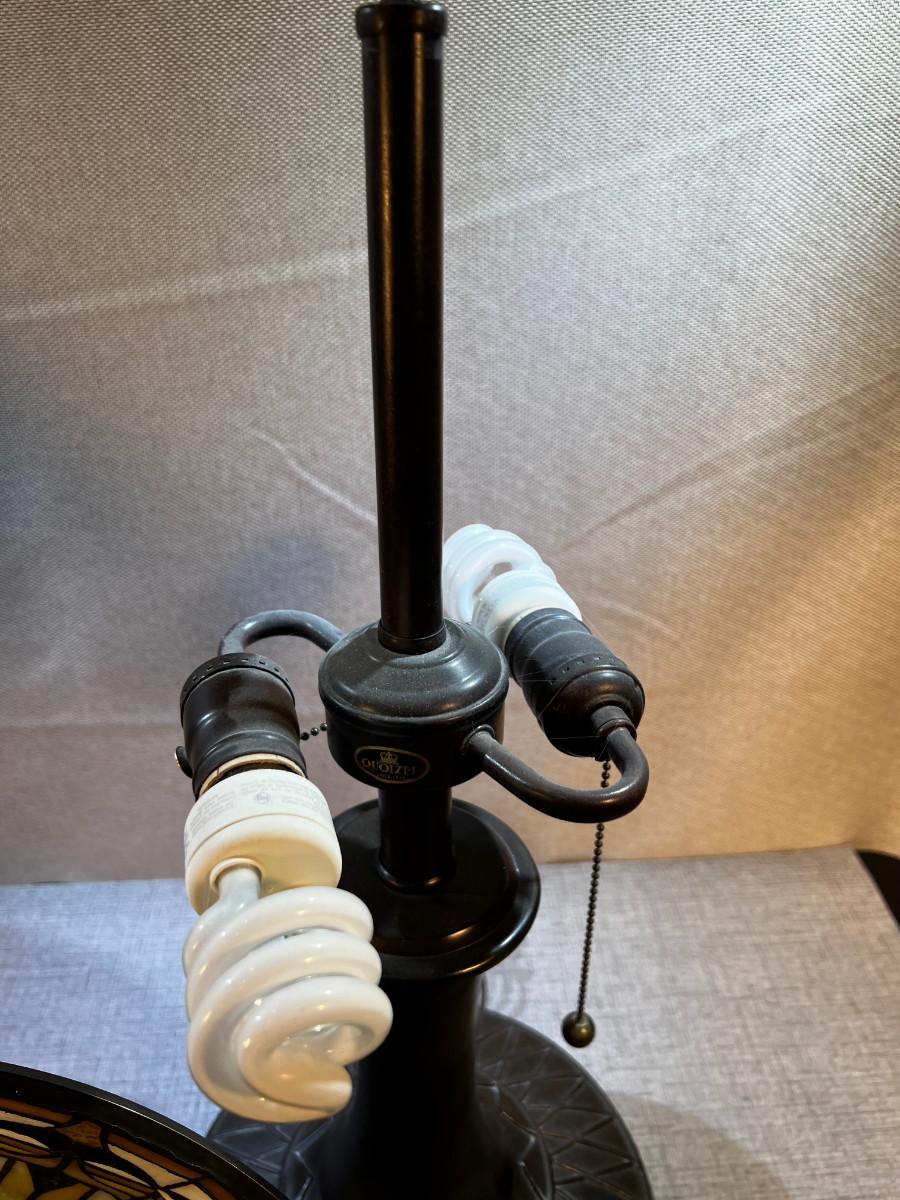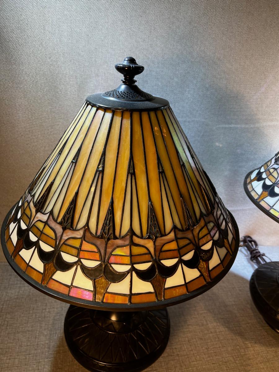 Pair of Tiffany Style Bronze & Stainglass Lamps, Quoizel