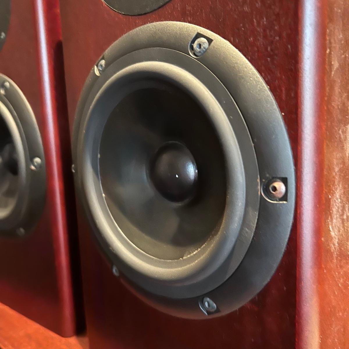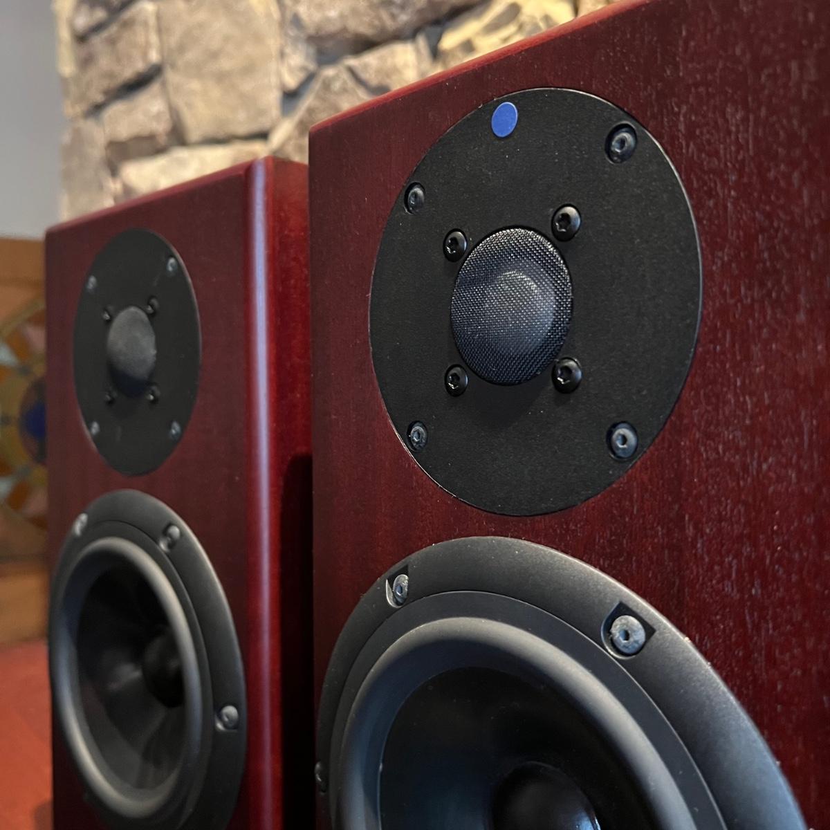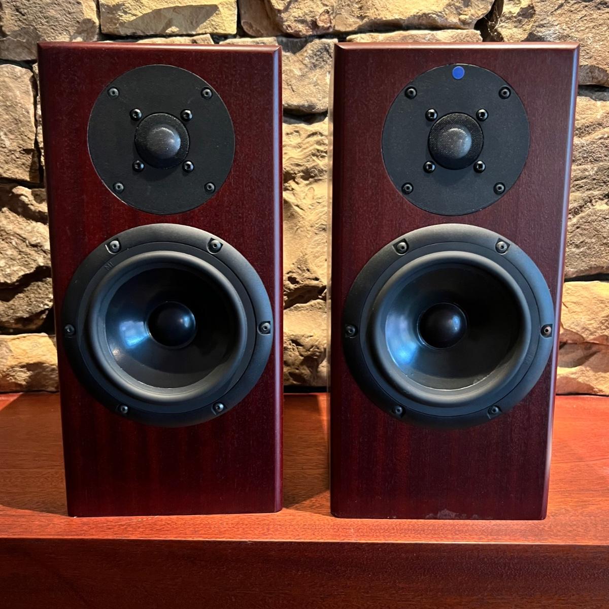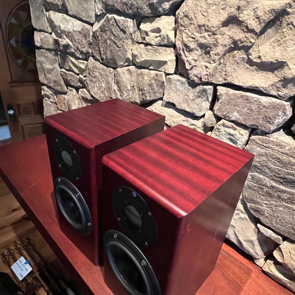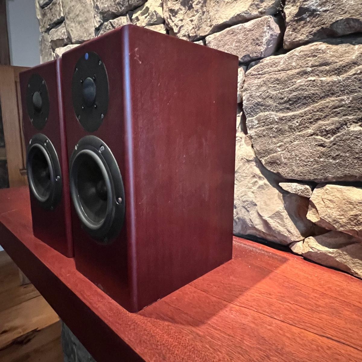 This lot includes a pair of bookshelf Totem Rainmaker acoustic speakers that have a red cherry finish. Speakers have not been tested.
