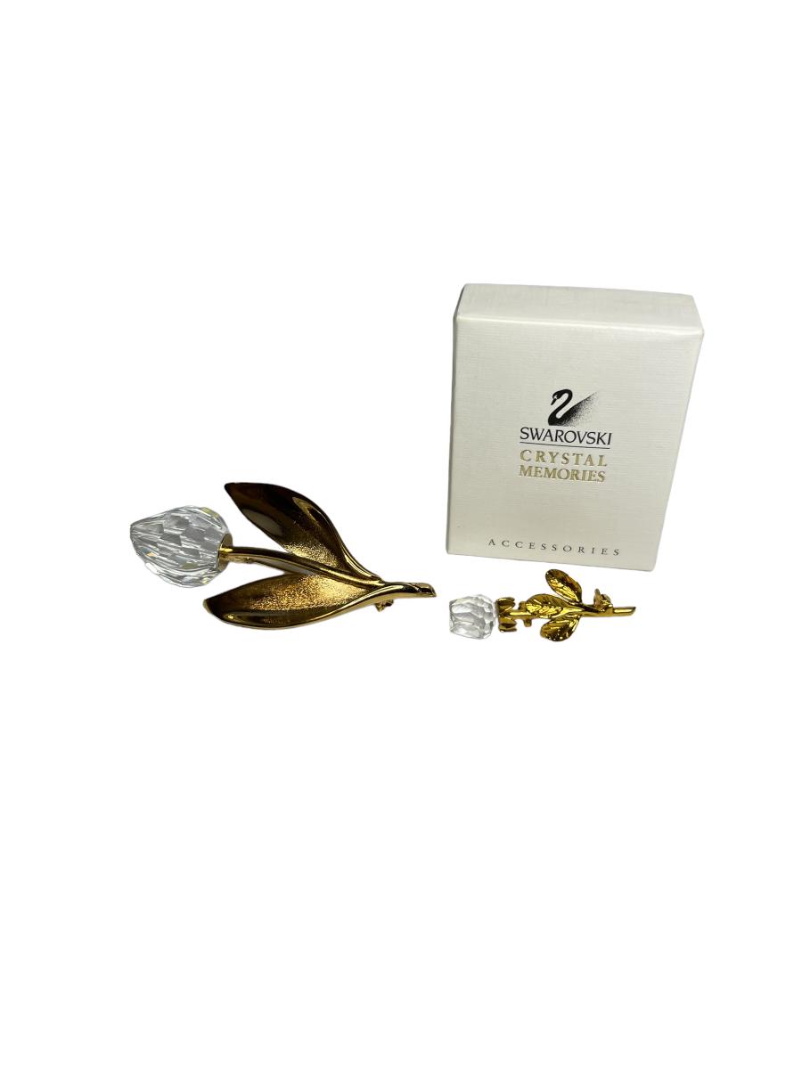 Pair of Tulip pins Swarovski. Biggest measures 3 inches long. Smaller one measures 2 inches long.