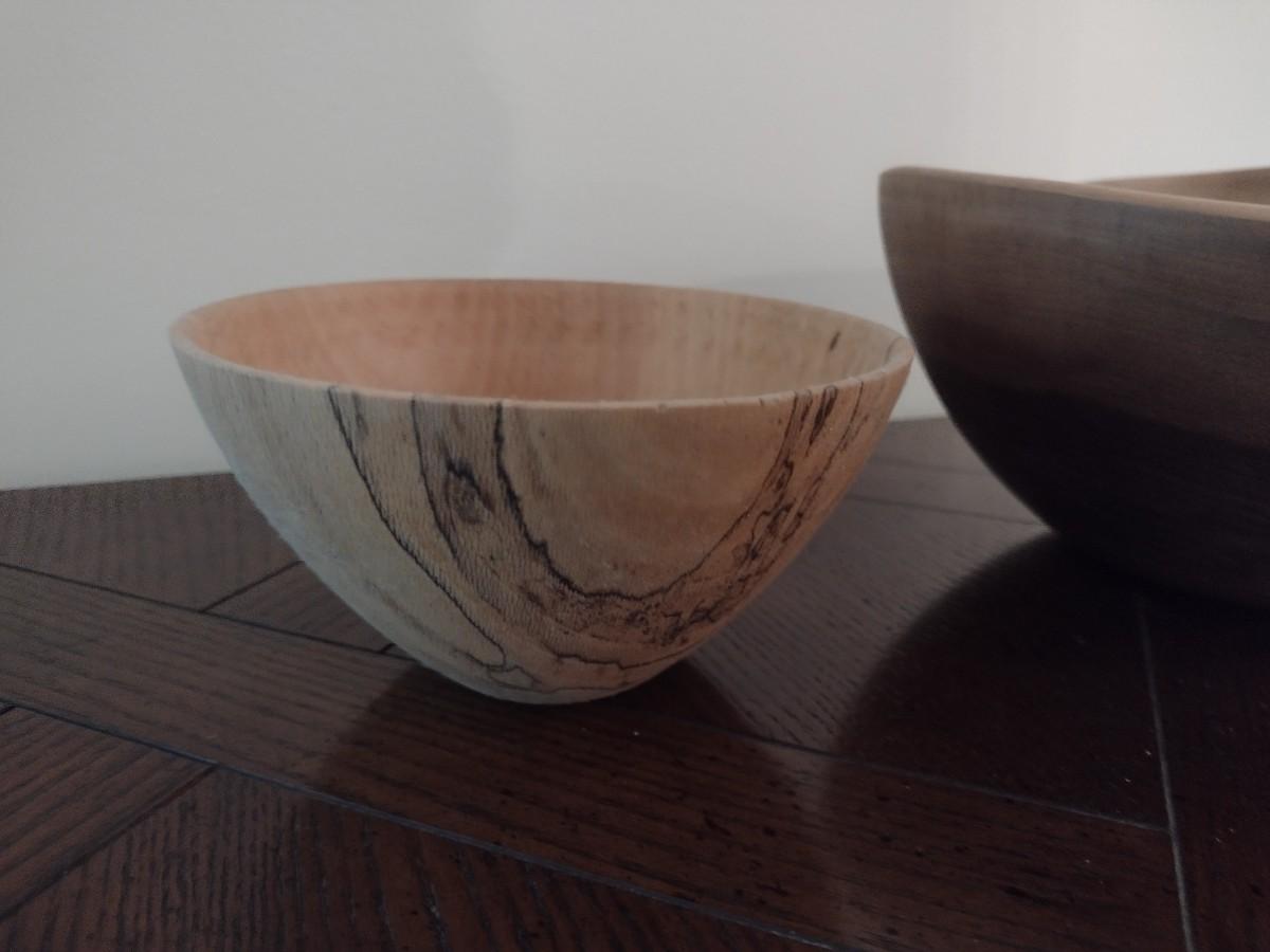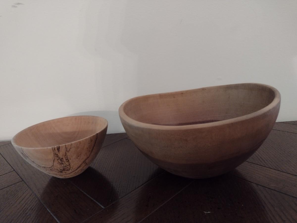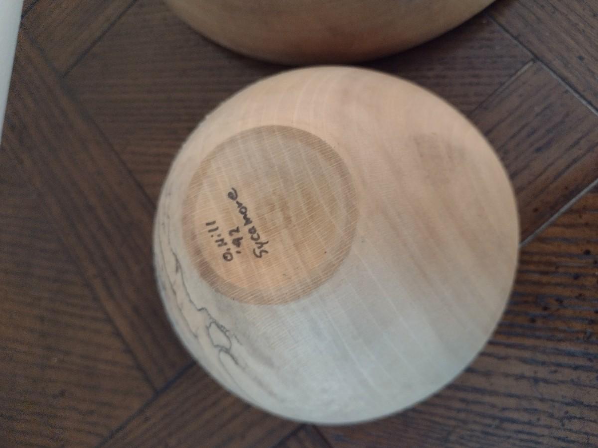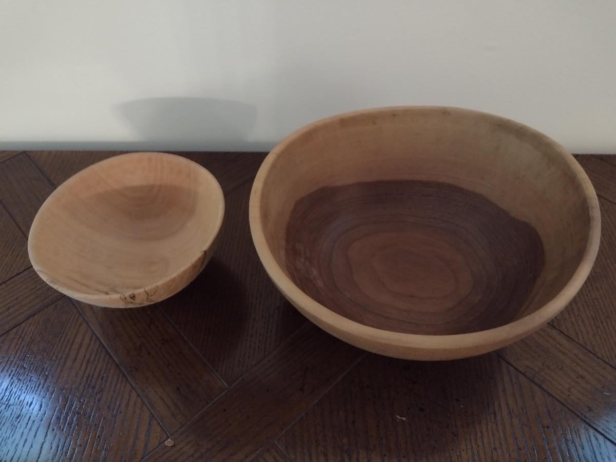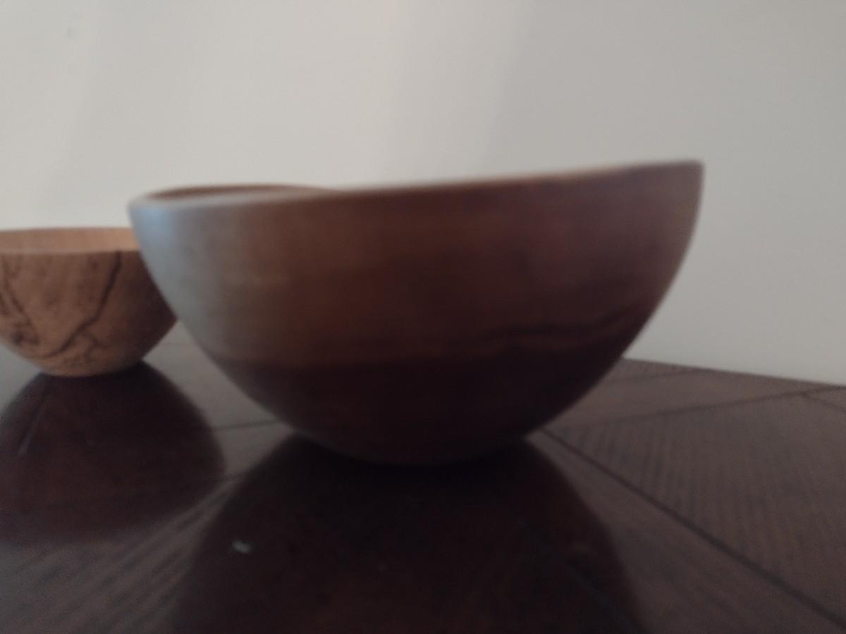 Pair of Turned Wood Sycamore and Walnut Bowls