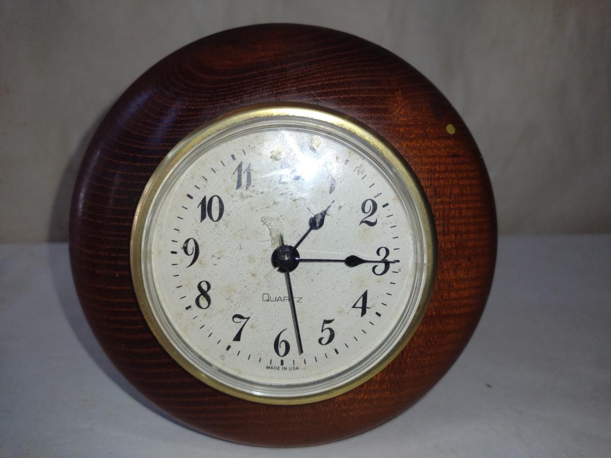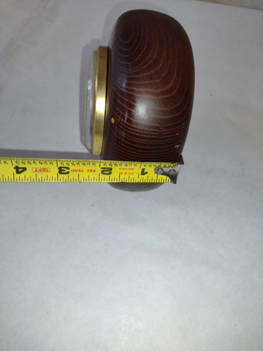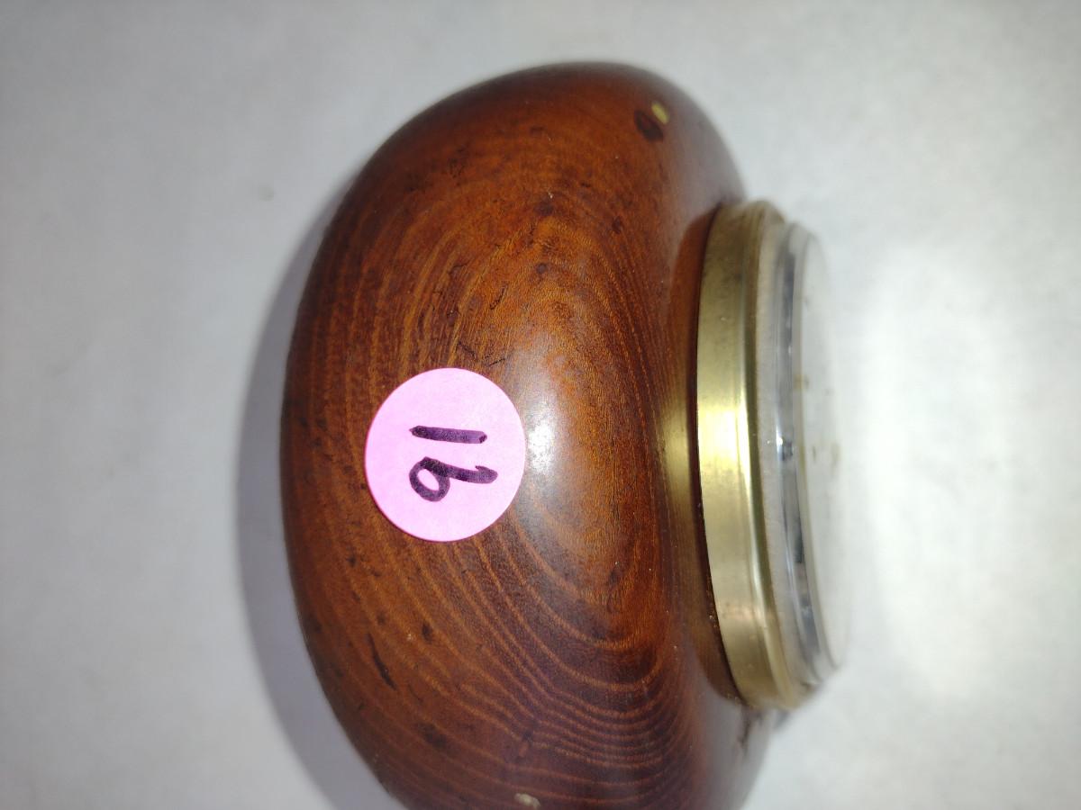 Pair of Turned Wooden Pieces by Bobby Phillips- (#91). Clock made of osage orange and barometer made of locust and cocobollo. Both items are in used condition and have signs of being stored in humidity and wear to finish.