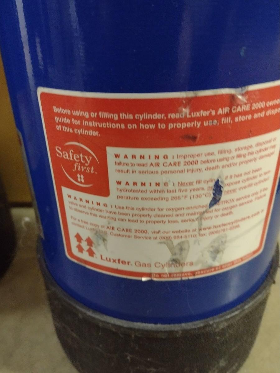 Pair of Two Blue Luxfer Brand Scuba Dive Gas Tanks with Double Head Valves
