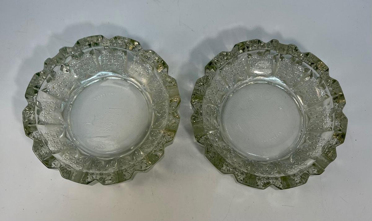 Pair of Two Clear Glass Ashtrays