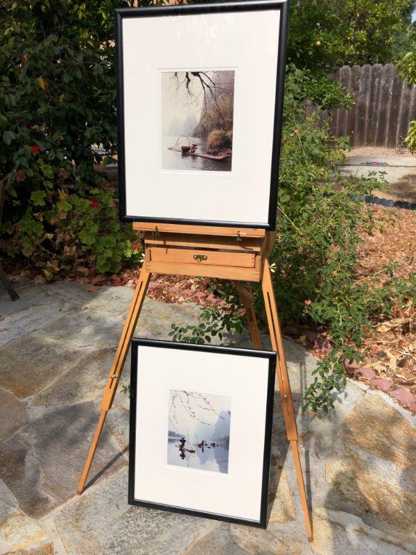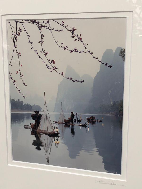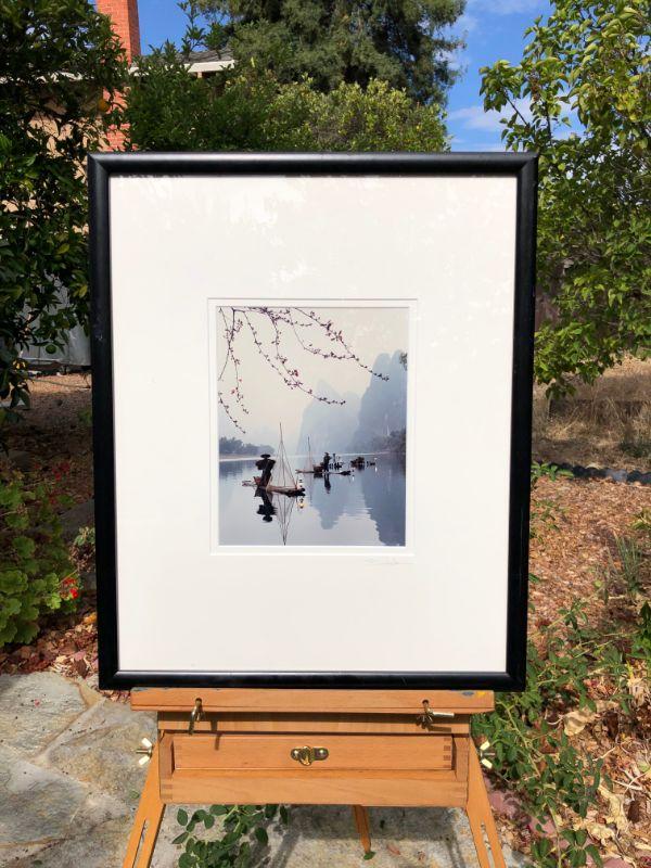 Pair of framed professional vintage photographs from China, showing two scenes of Chinese fisherman. In very good condition.