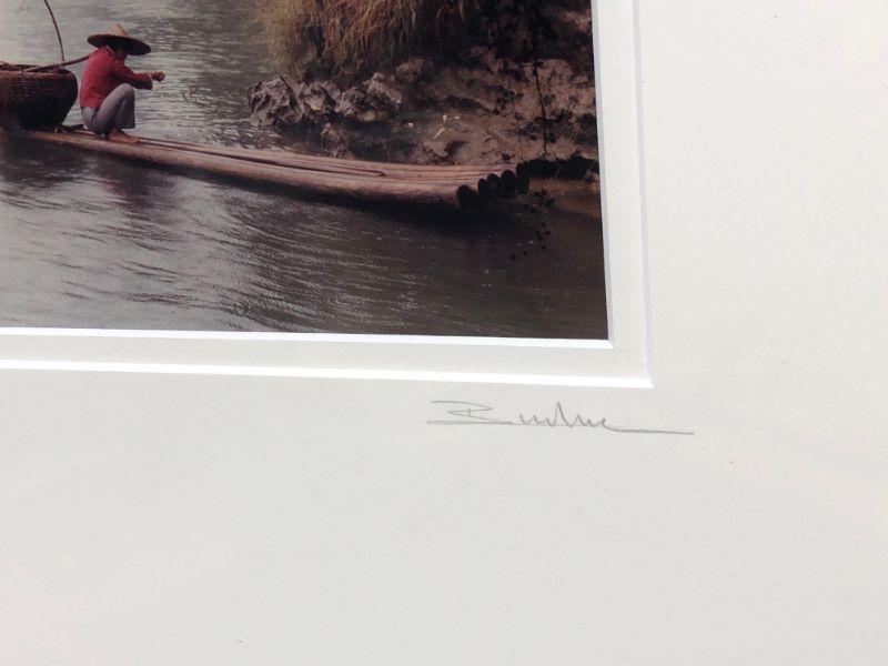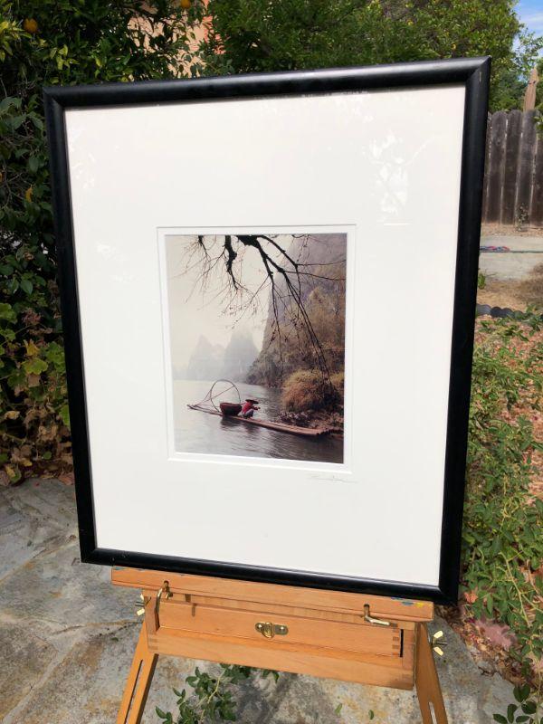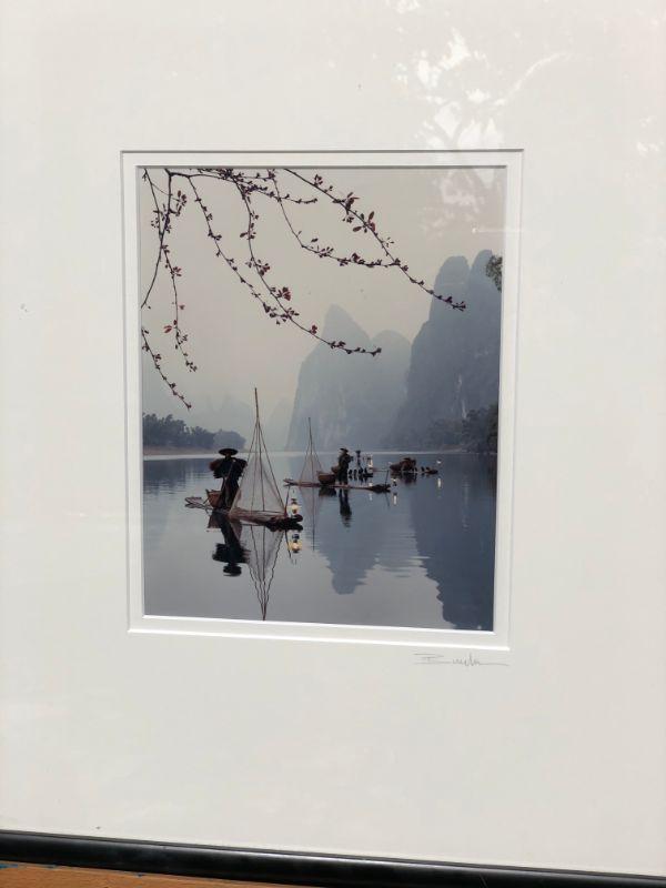 Pair of Two Framed Vintage Chinese Fisherman Signed Photographs