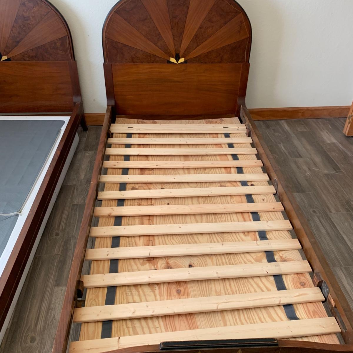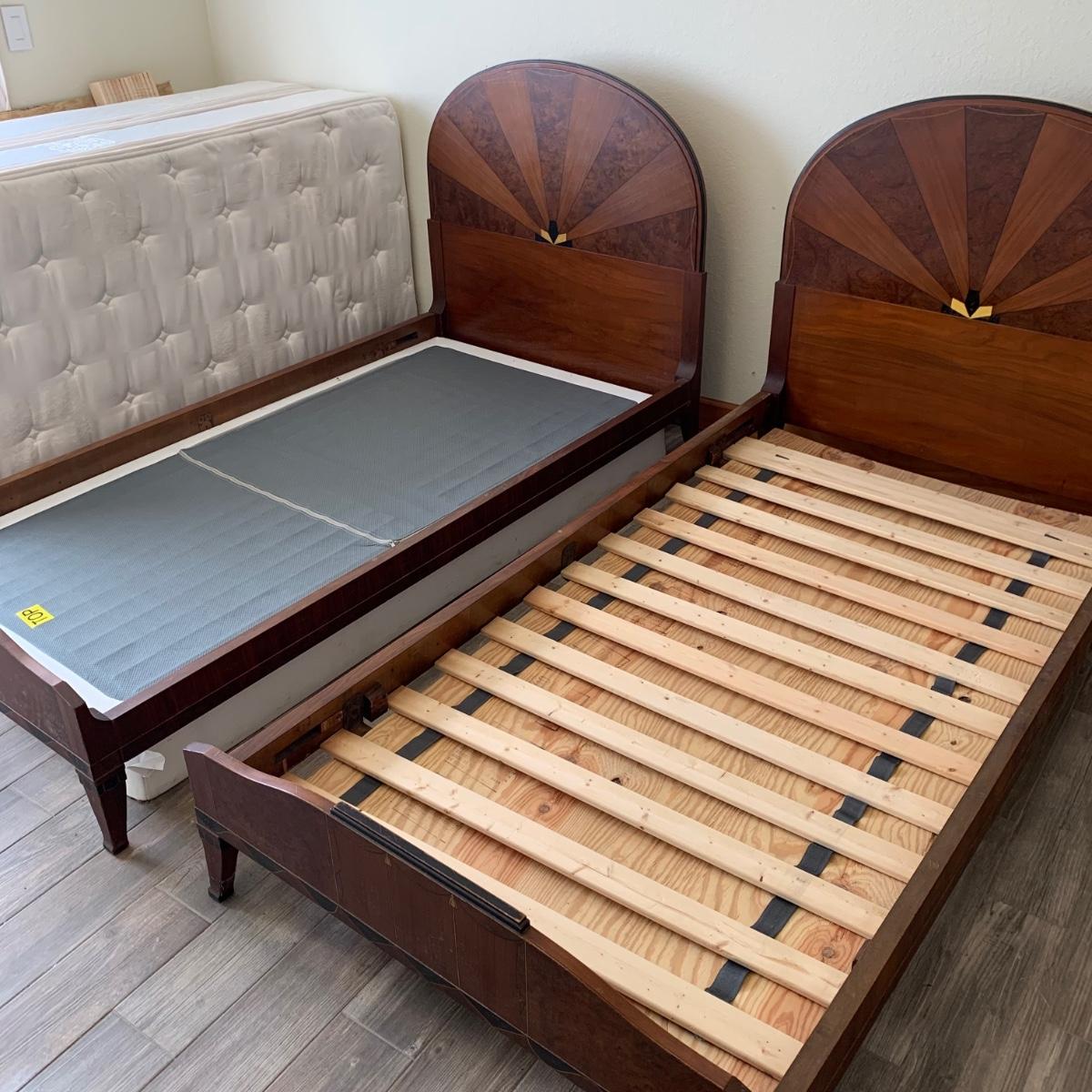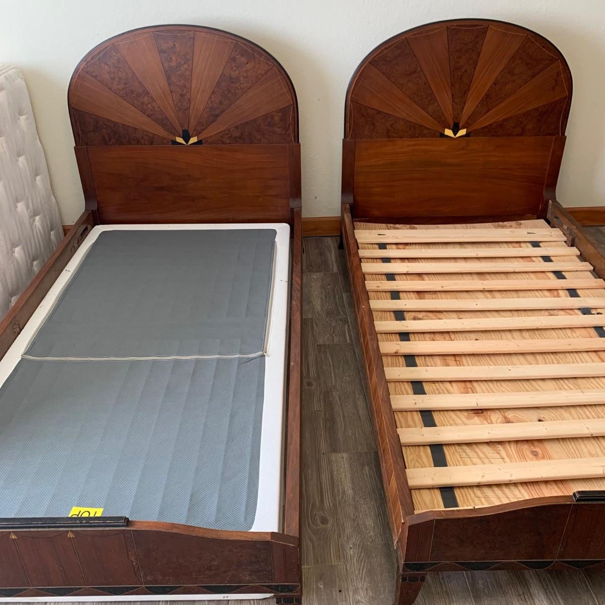 Matching Pair of Art Deco Wooden Twin Bed Frames (B1-HS)