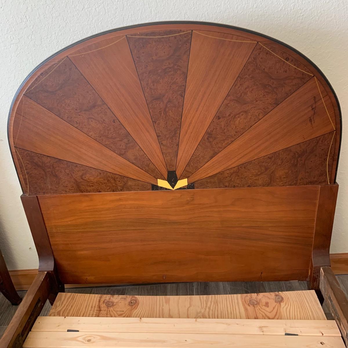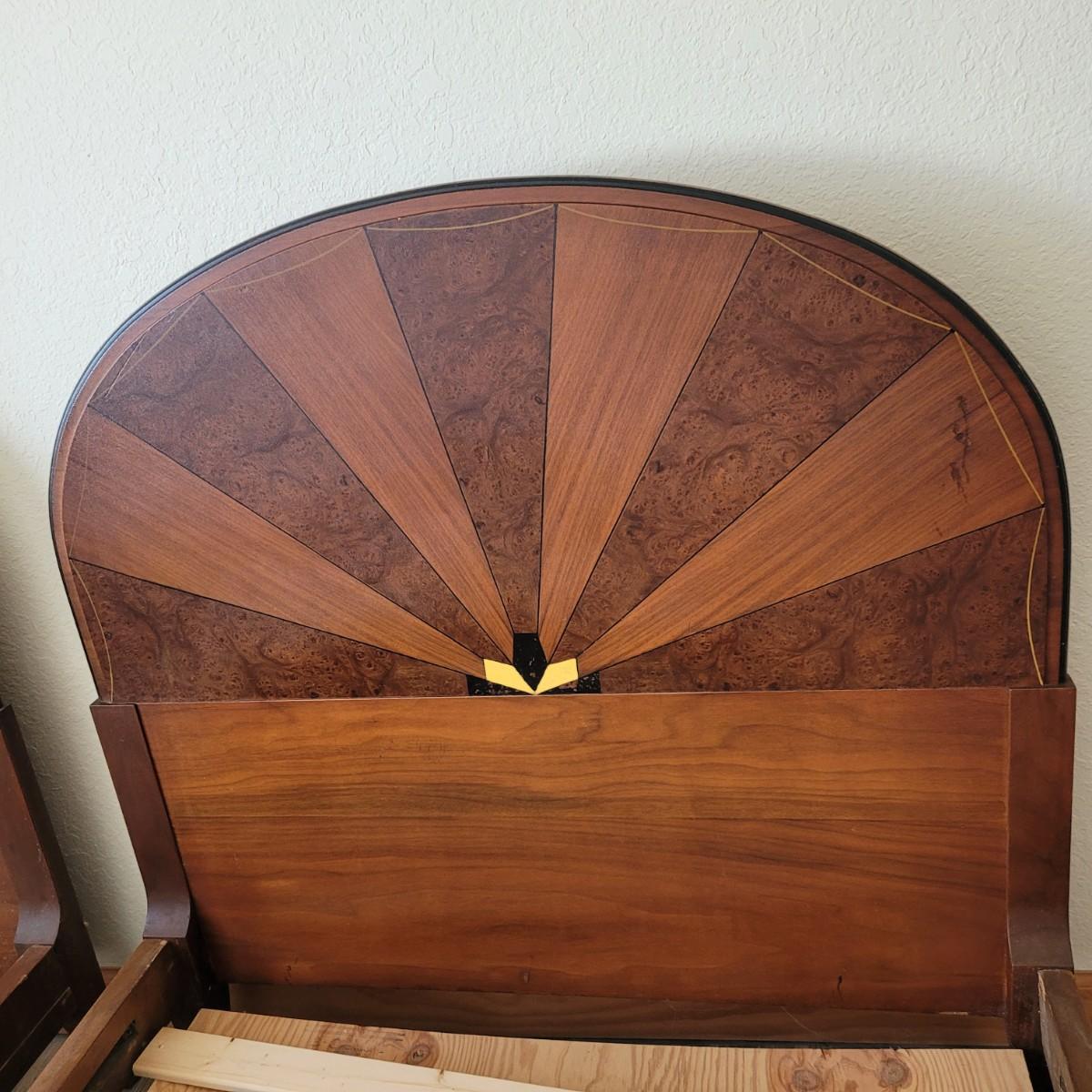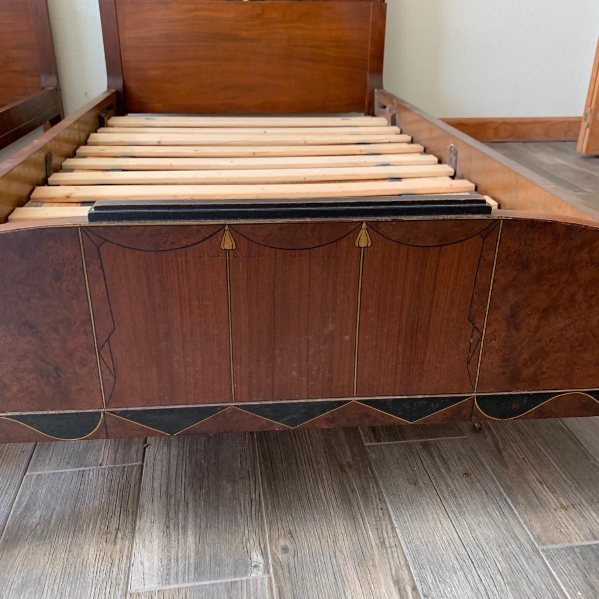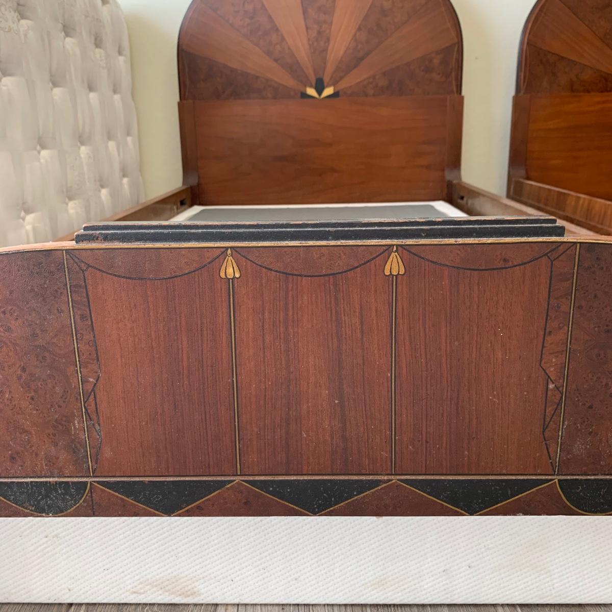 Matching Pair of Art Deco Wooden Twin Bed Frames (B1-HS)