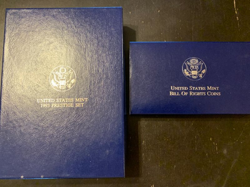 One is the prestige set and the other is the Silver dollar and silver half dollar set. See pics for more information. Priority Shipping is available for the flat fee of $9.99