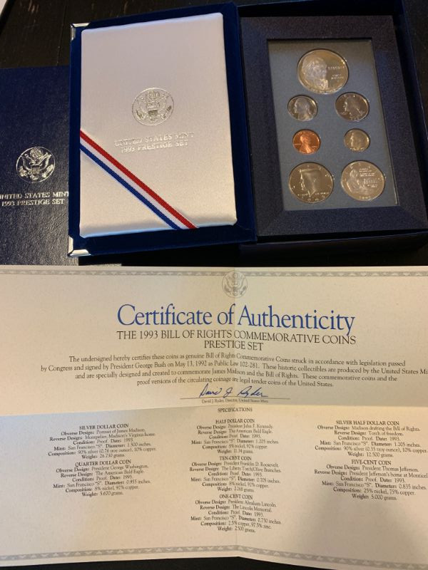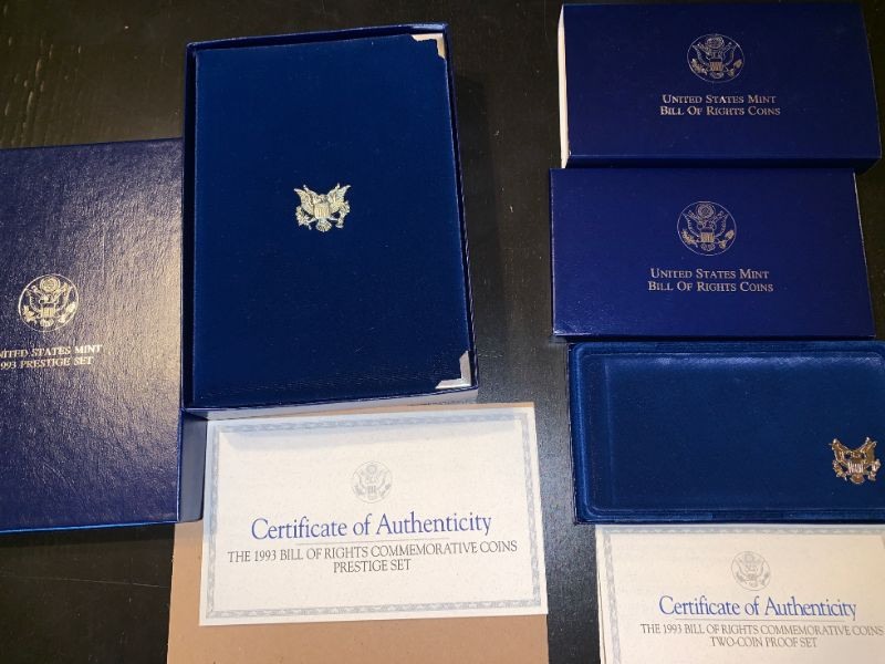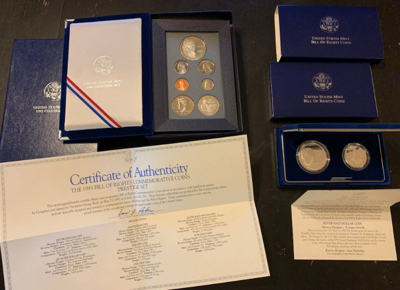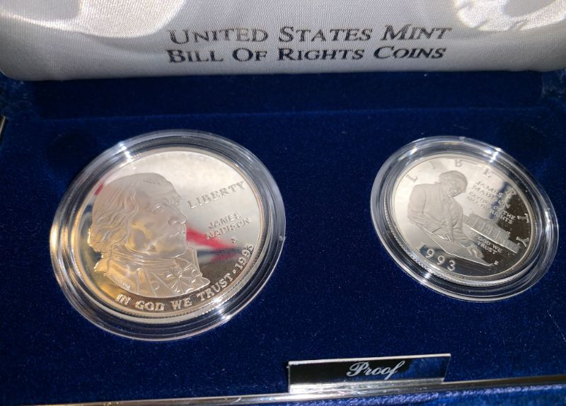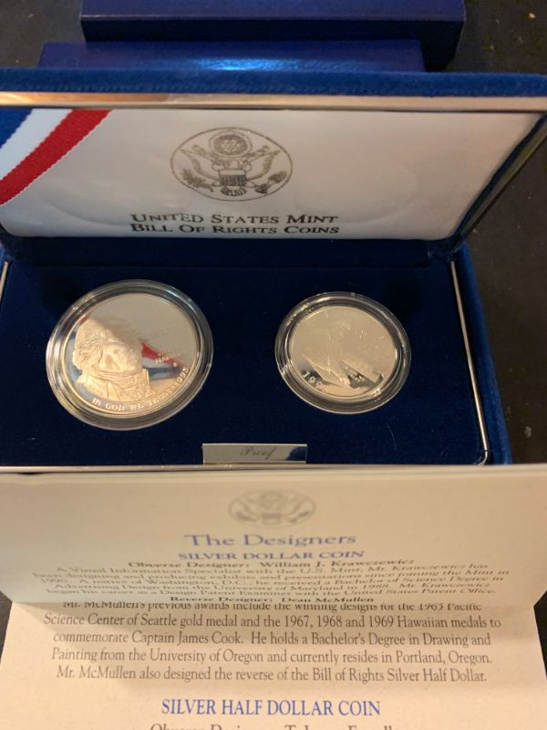 Pair of United States Bill of Rights Commemorative Silver Dollar Coin Sets