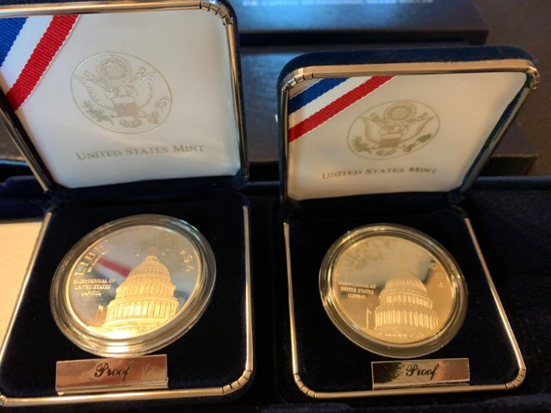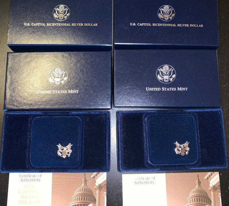 Pair of United States Capitol Bicentennial Silver Dollar Coins