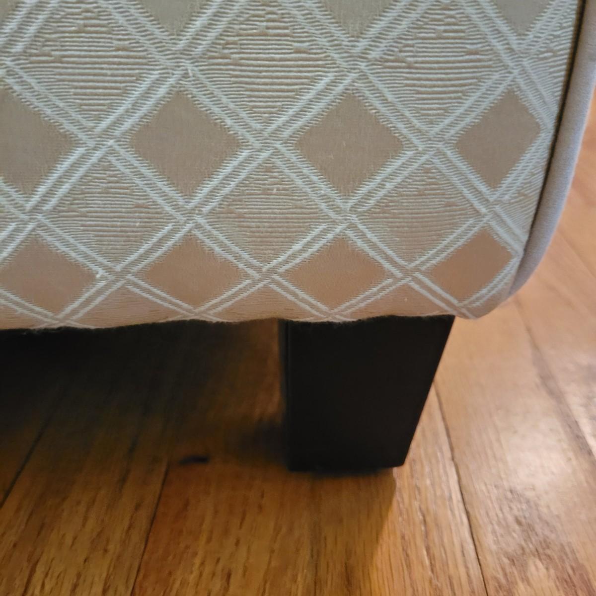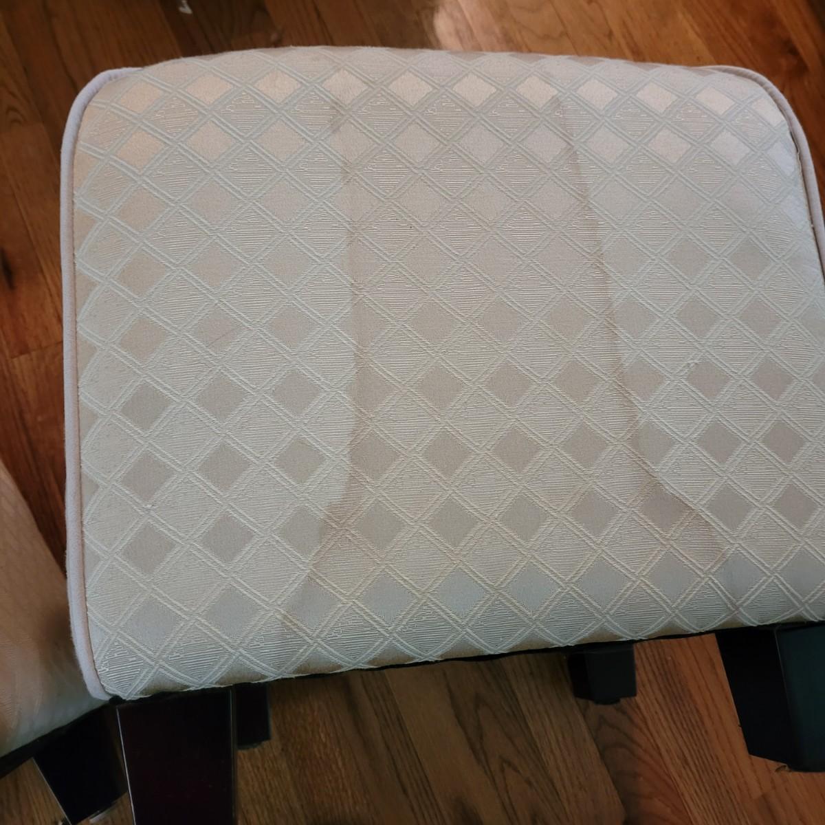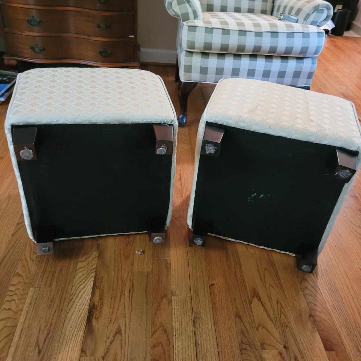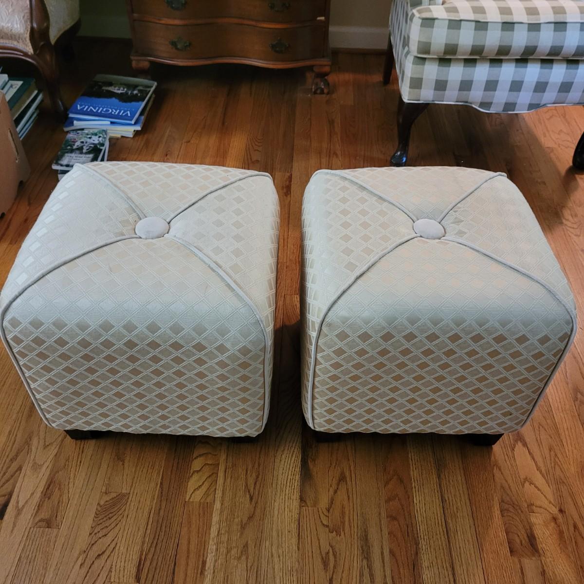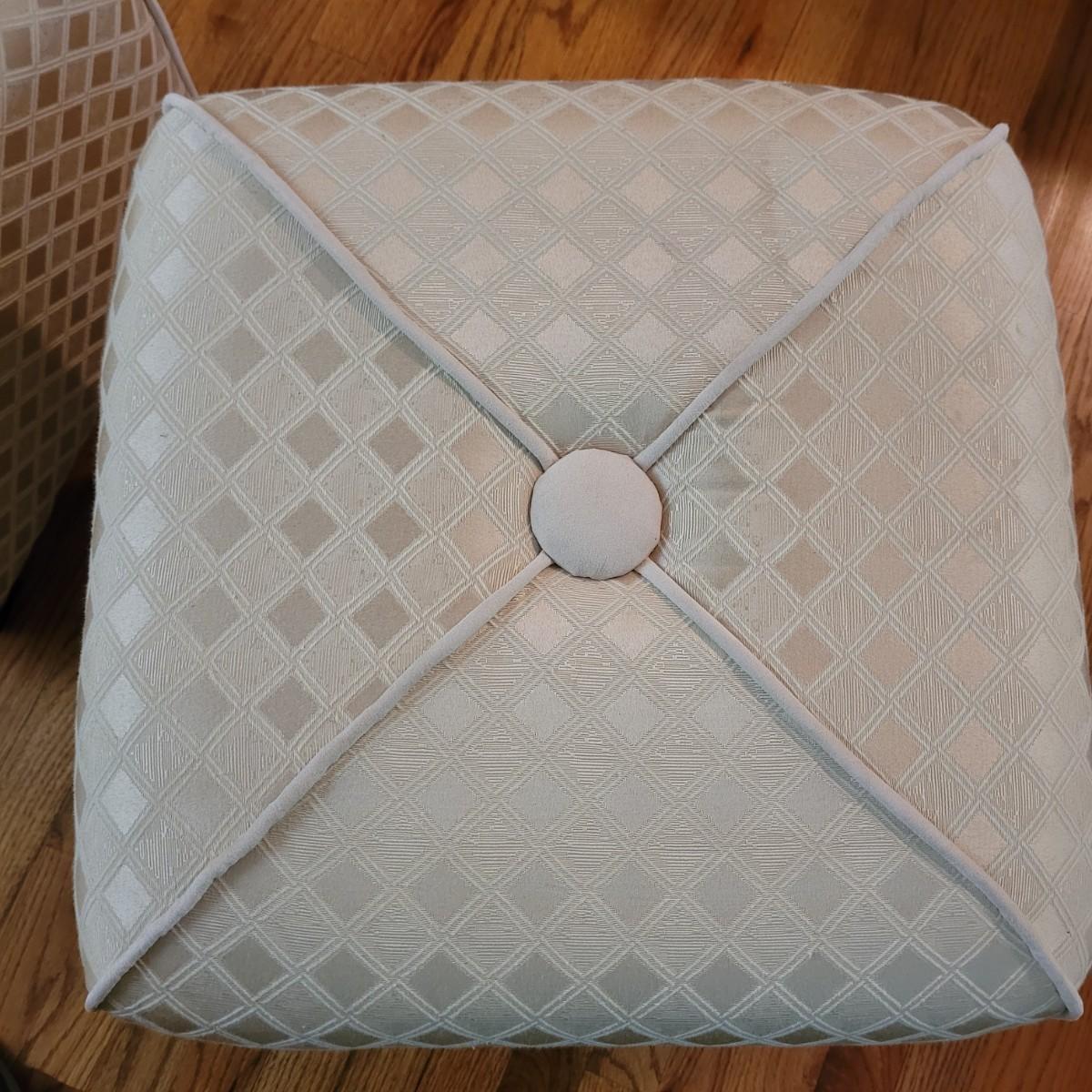 Tufted ottomans with piping and textured diamond pattern. Stain on one side (see photos). Measures approximately 18" cubed. Local pickup only.
