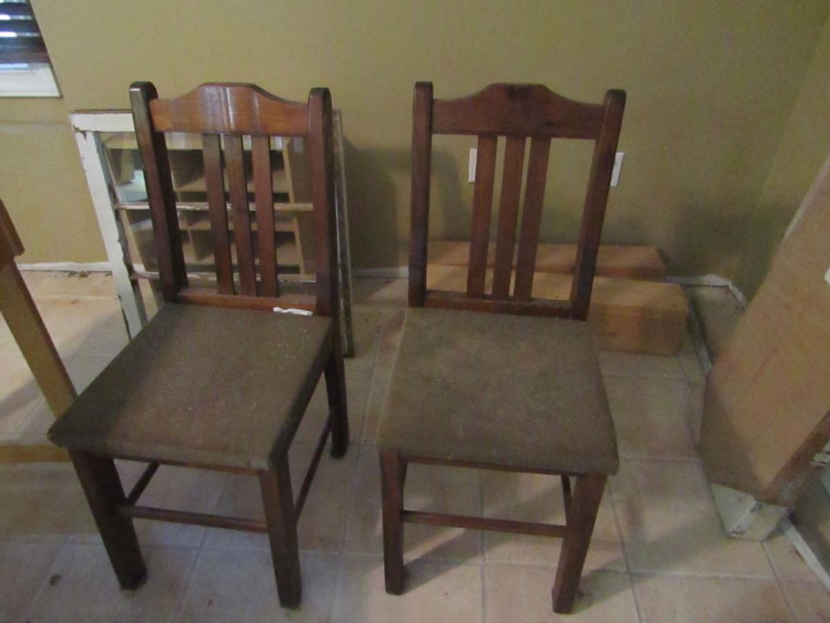 Pair of Upholstered Wood Framed Chairs. Will need to be cleaned/re-upholstered.