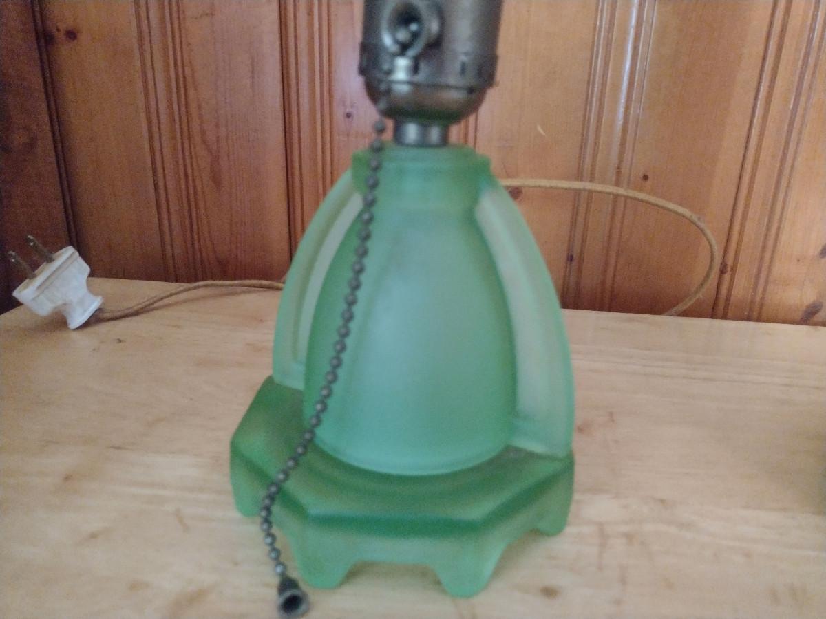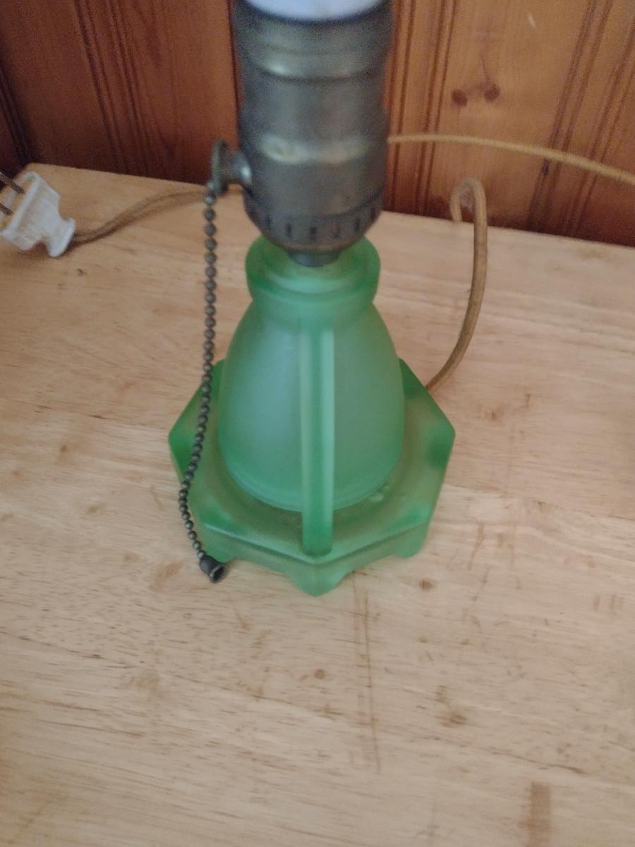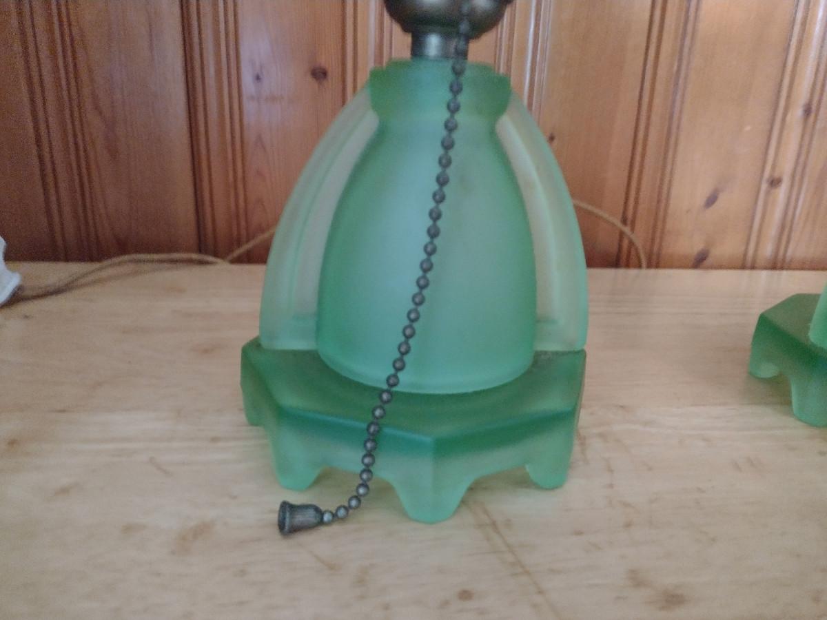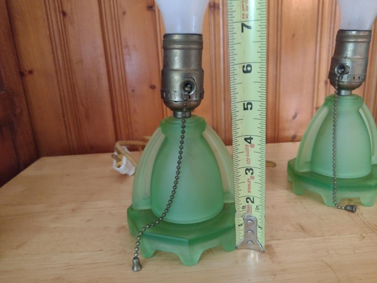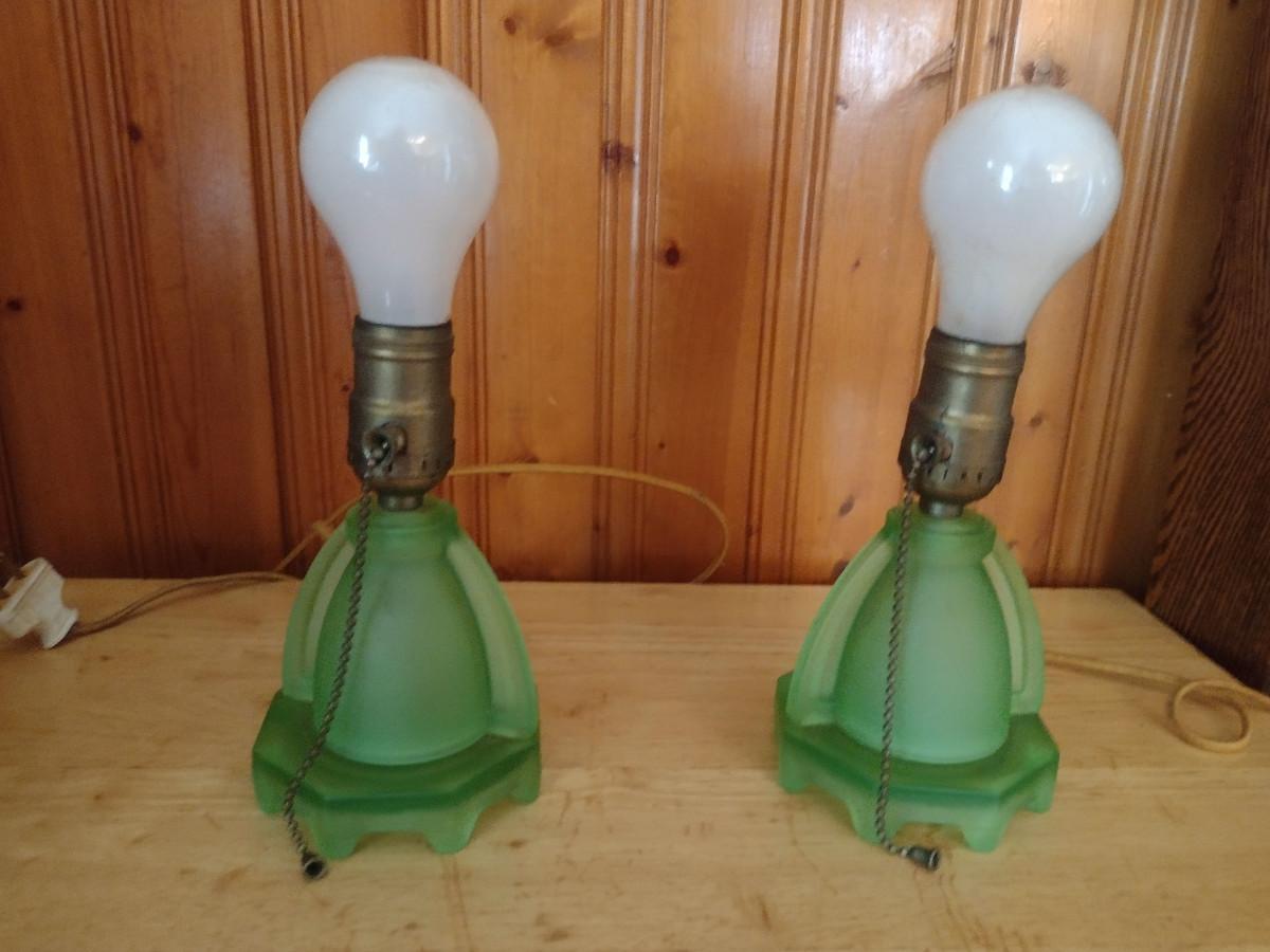 Pair of Uranium Glass Table Top Lamps with Shades (K)