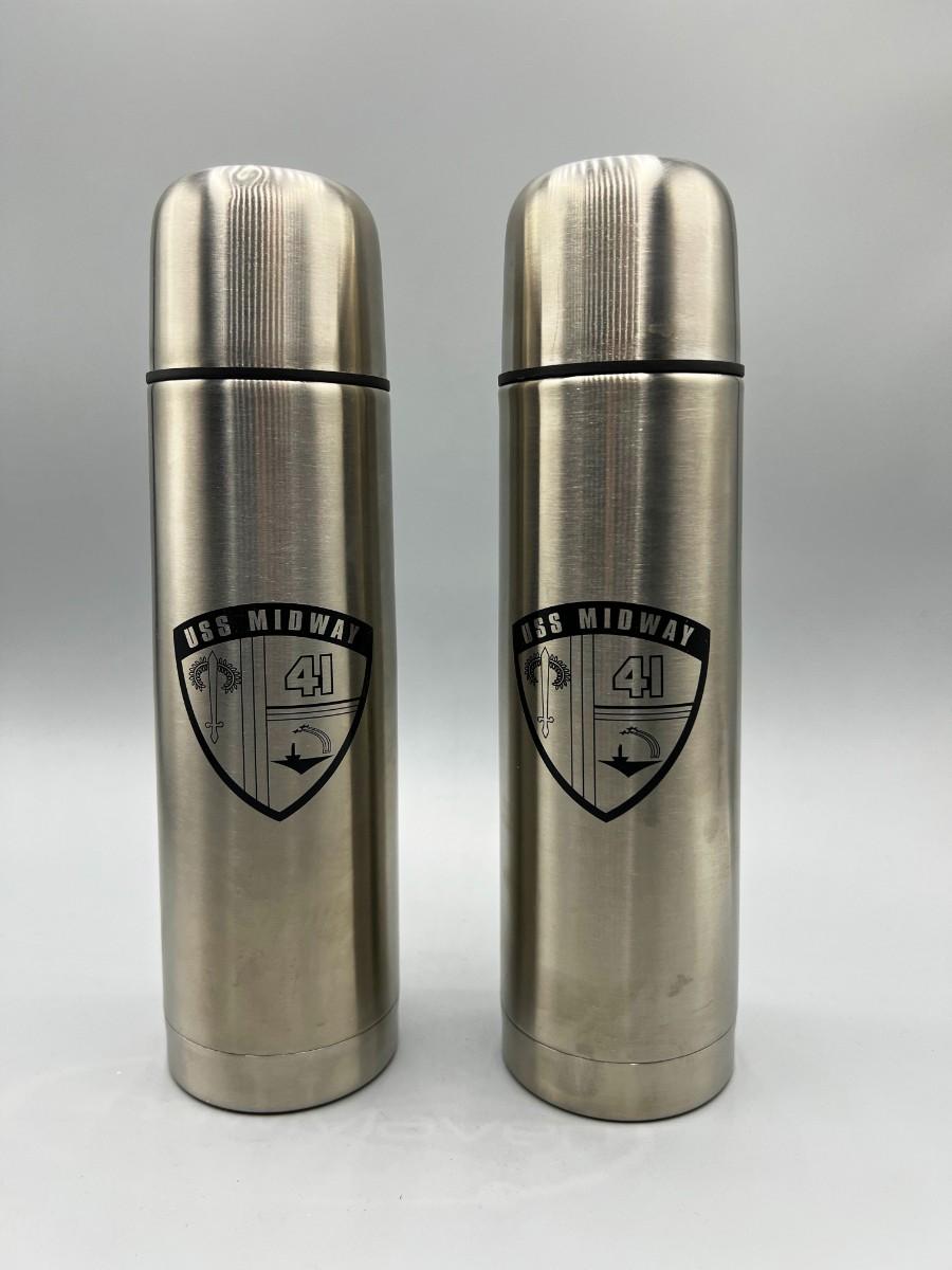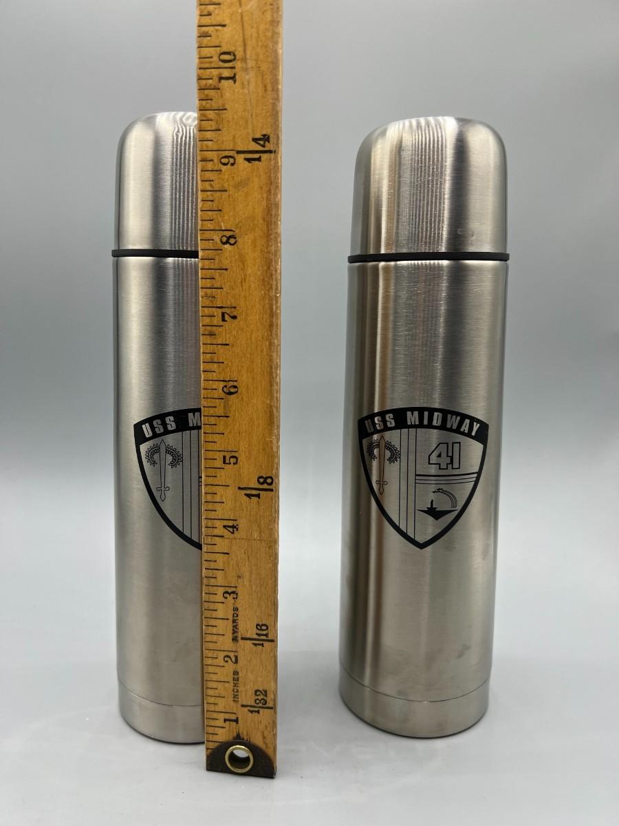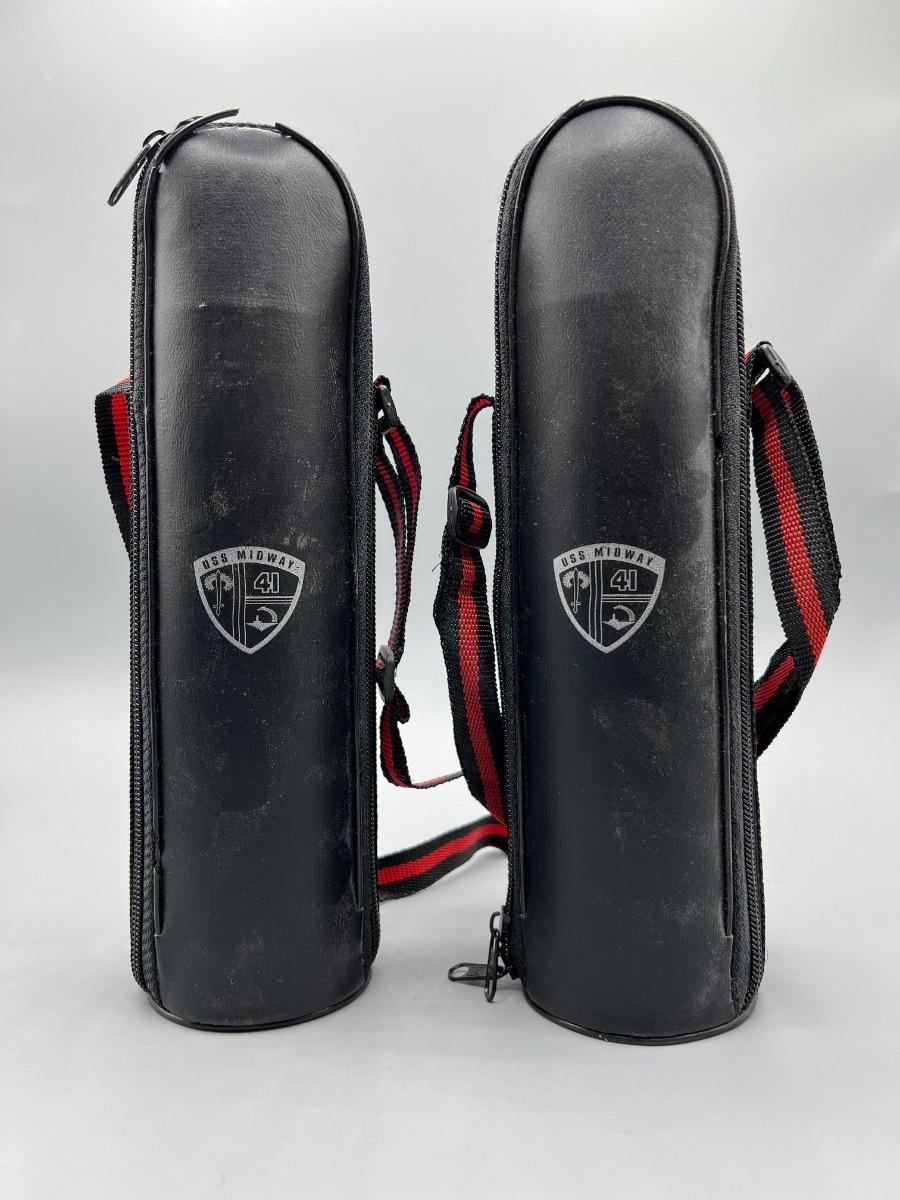Pair of USS Midway Commemorative Thin Metal Thermoses with Travel Bags