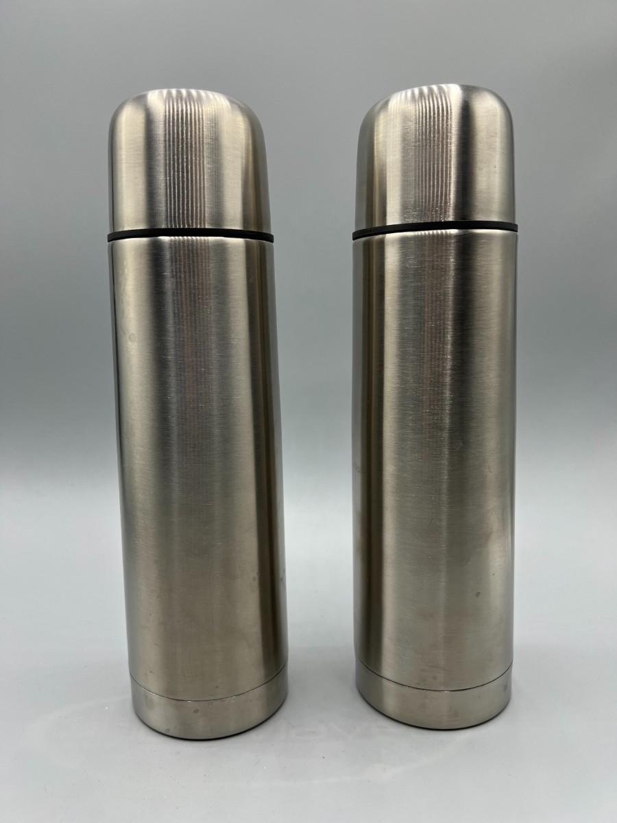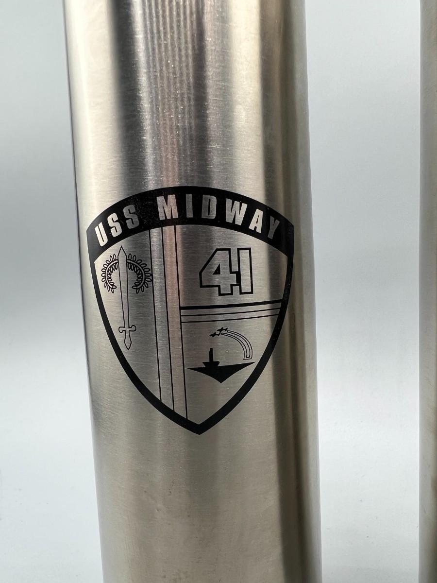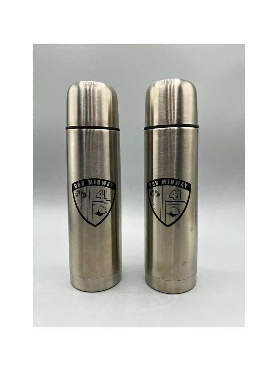 Pair of USS Midway Commemorative Thin Metal Thermoses with Travel Bags