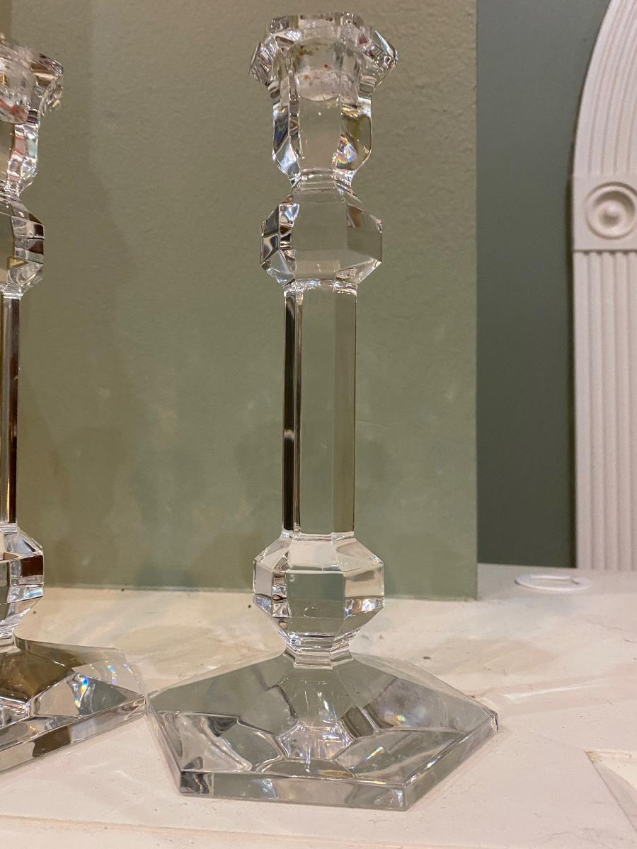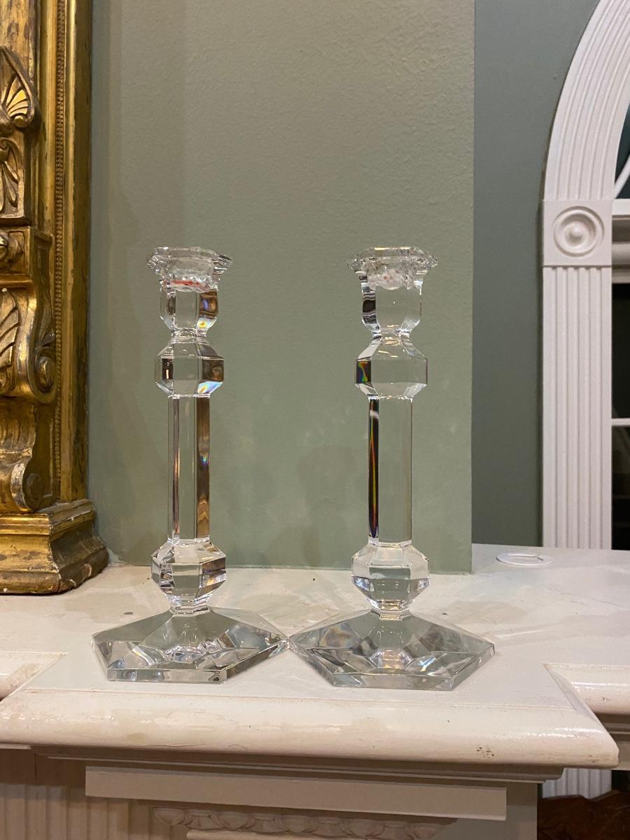 Pair of Val St. Lambert crystal candlesticks. Approx. 9-1/2”H