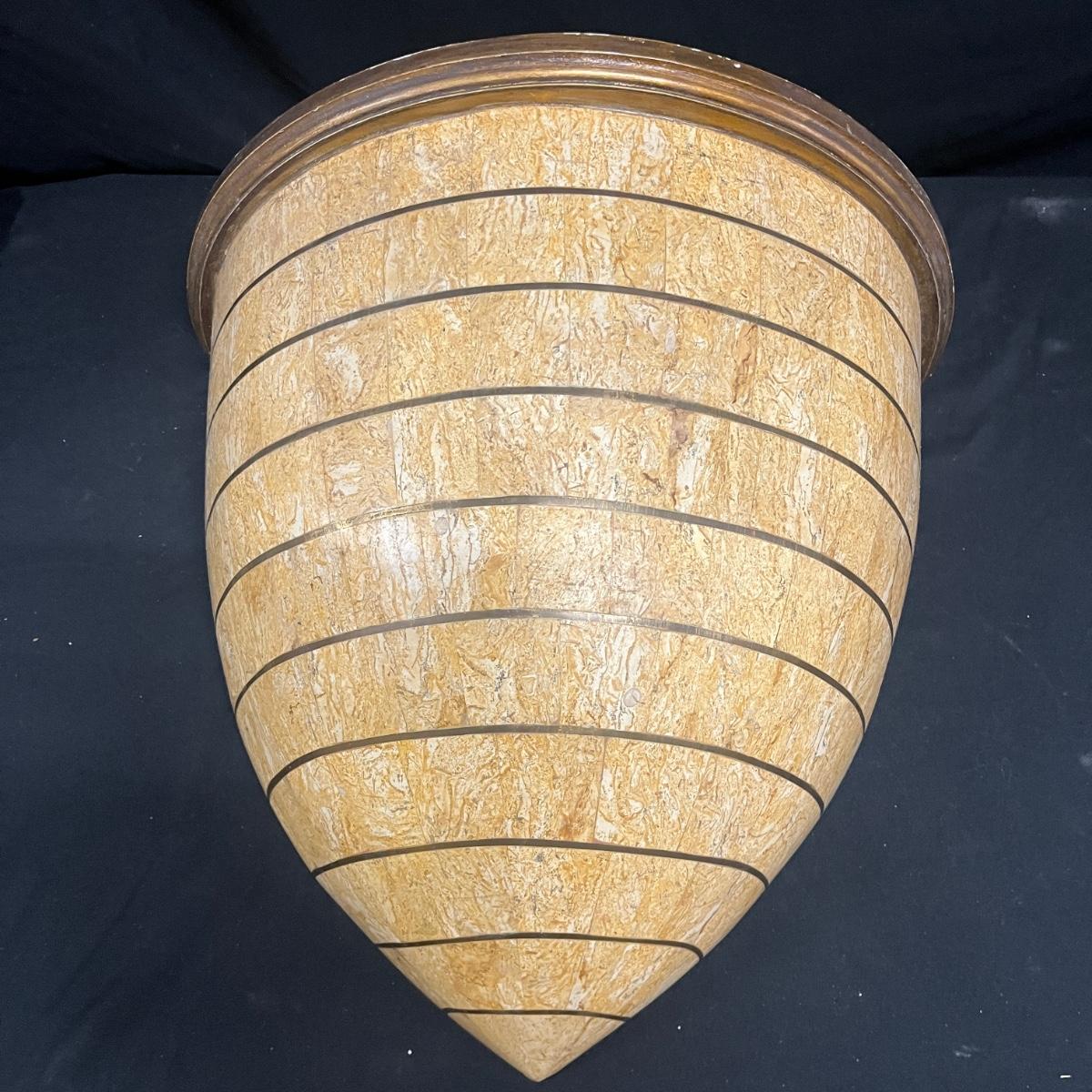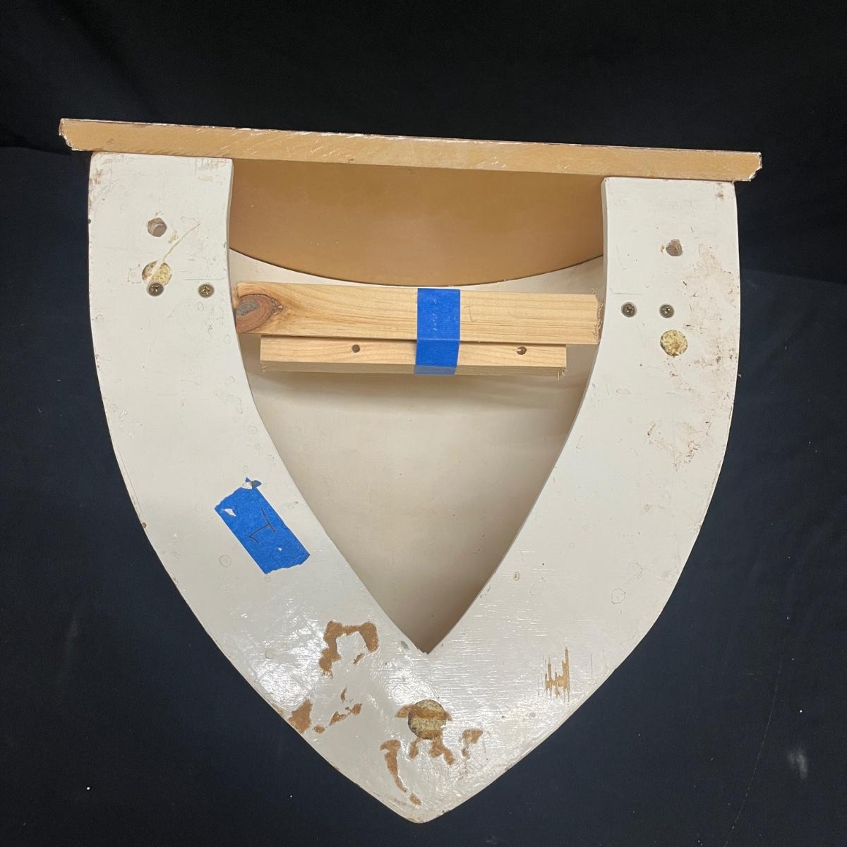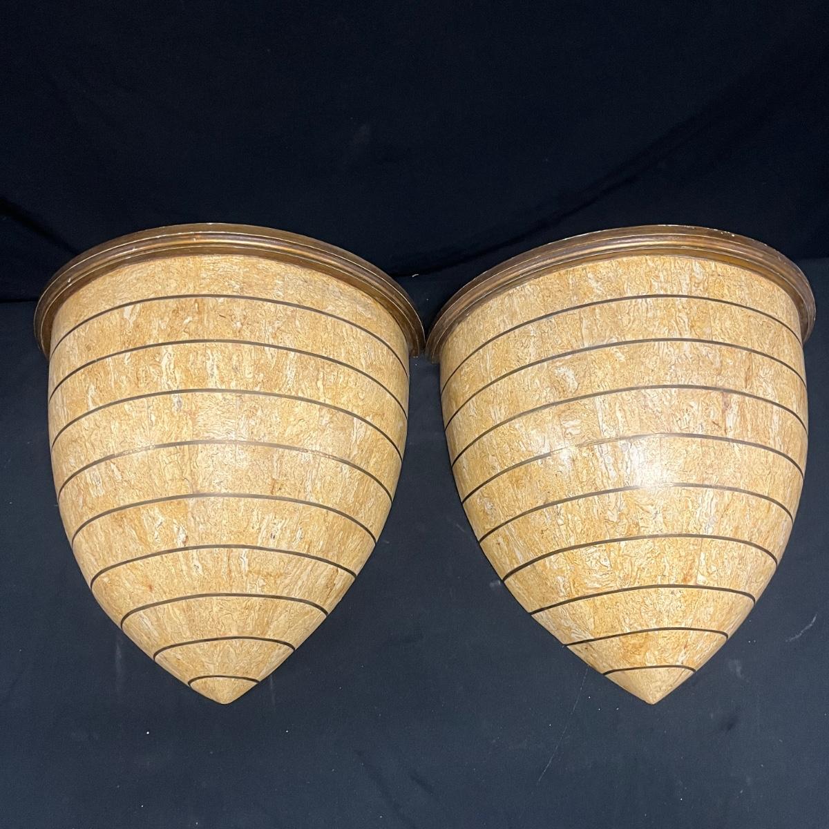 Lot includes a pair of wall mount shelves that appear to be veneered with a brass inlay. Each shelf measures 16” x 8.5” x 15.5”H.