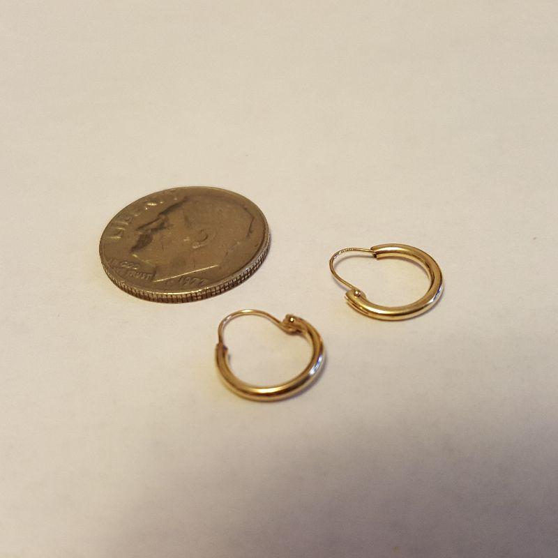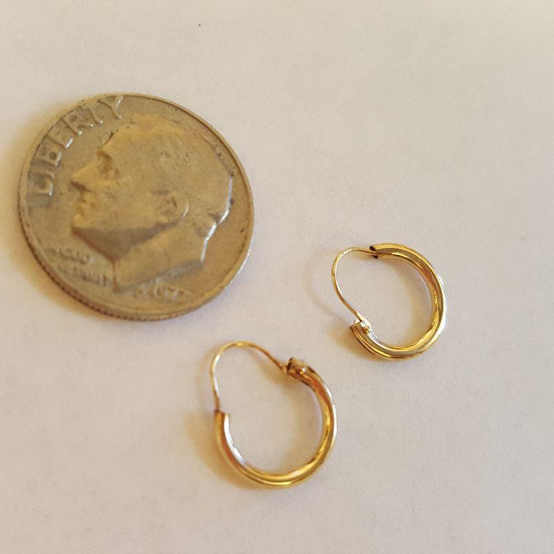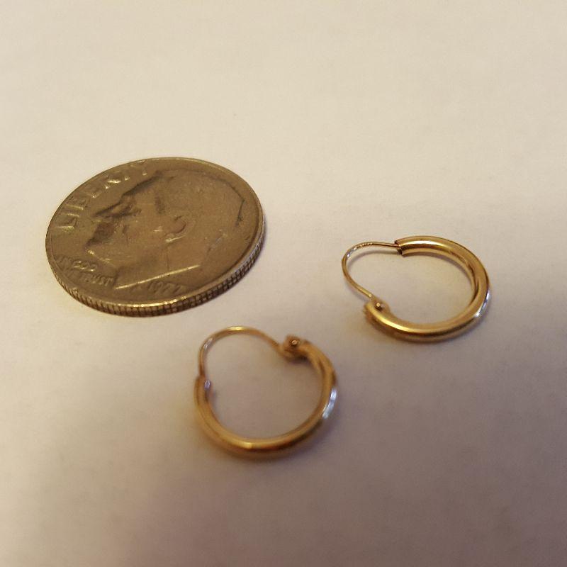 This auction lot is for a Pair of Very Small Gold (?) Earrings. We believe these to be gold but they have not been tested and are too light in weight for our scale to measure. They come from the same estate as the gold necklaces in this auction.