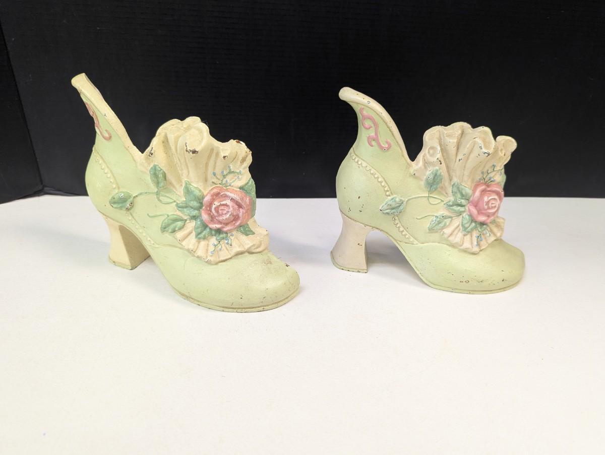 Pair Of Victorian Cast Iron Shoe Painted A.S.P. 2000