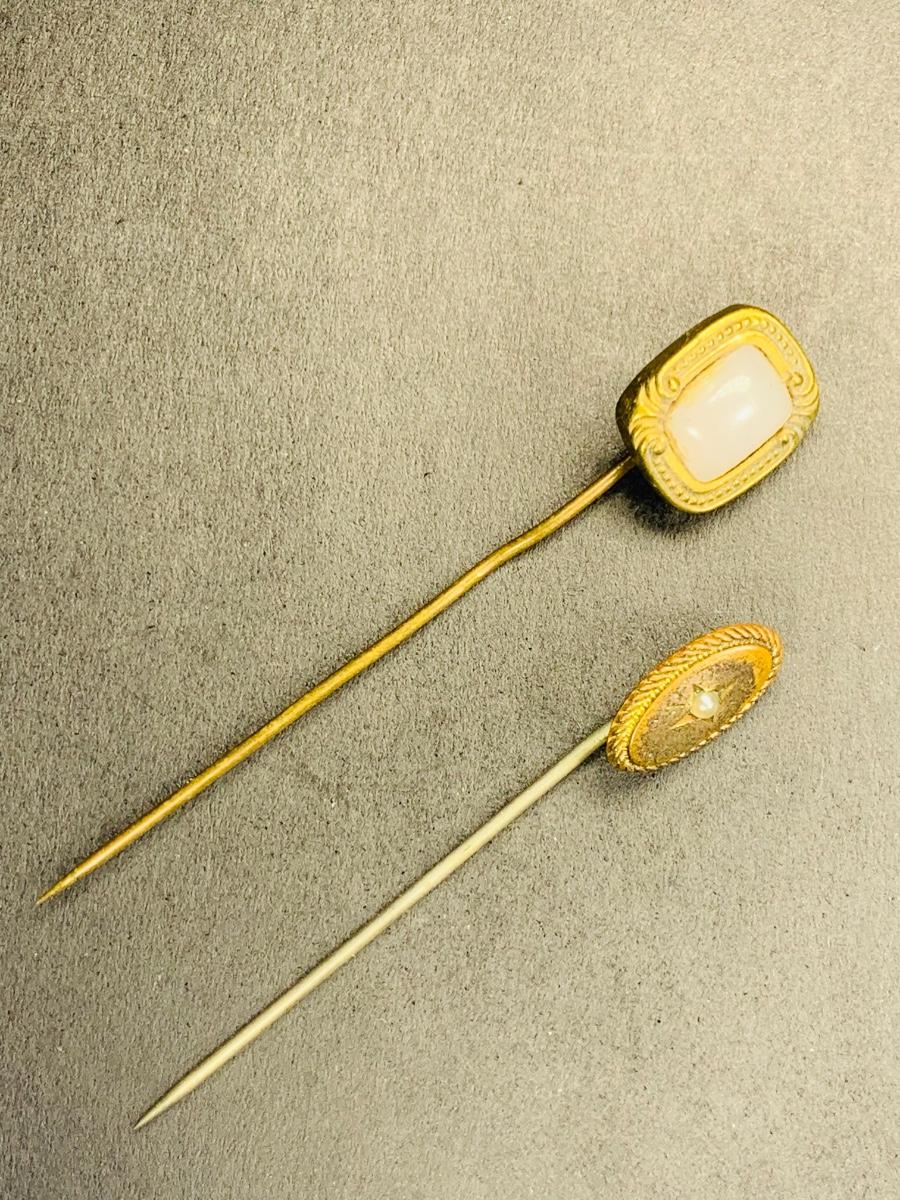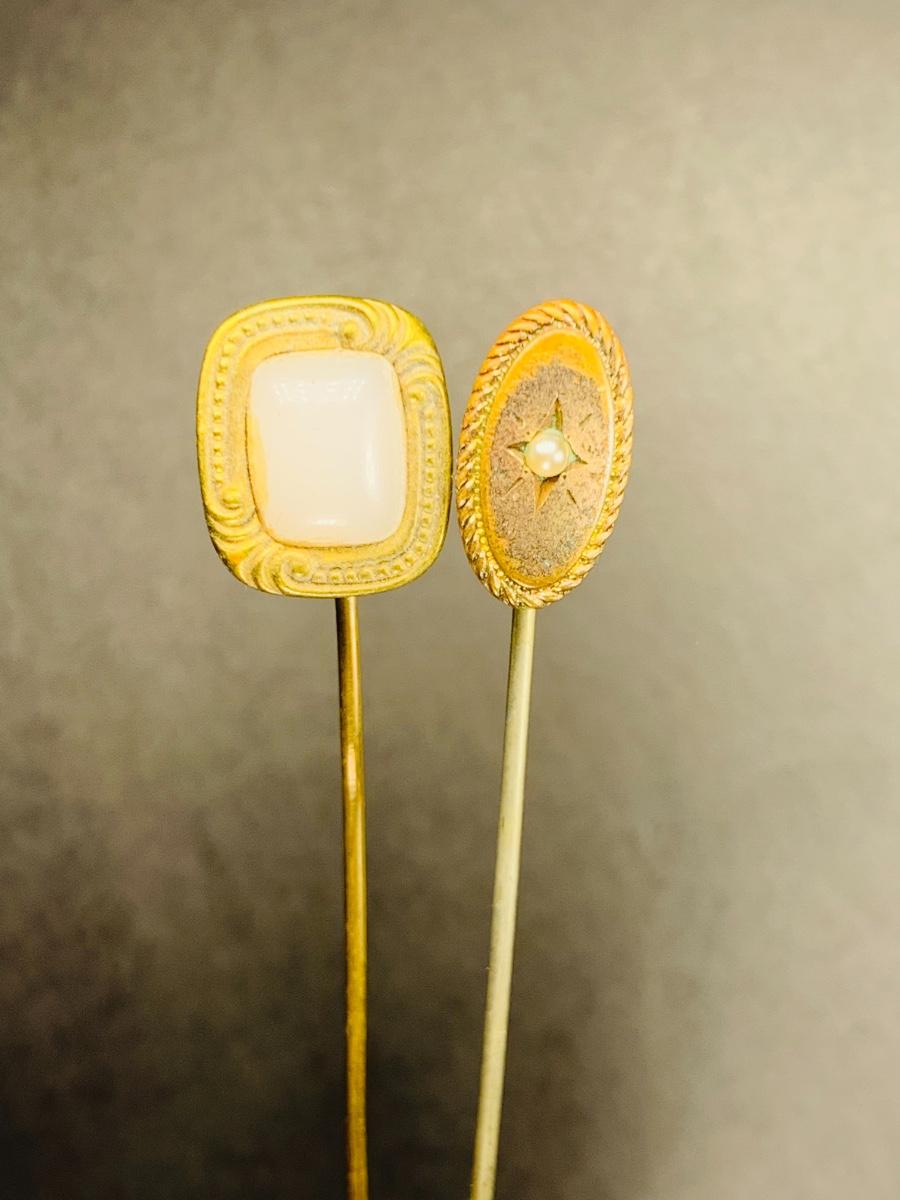 Pair of Victorian English Hat pins - moonstone and pearl