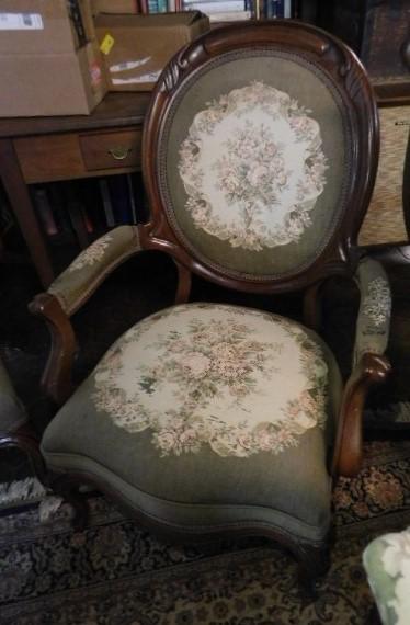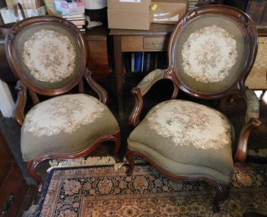 Pair of Victorian Upholstered Gentleman and Lady's Chair