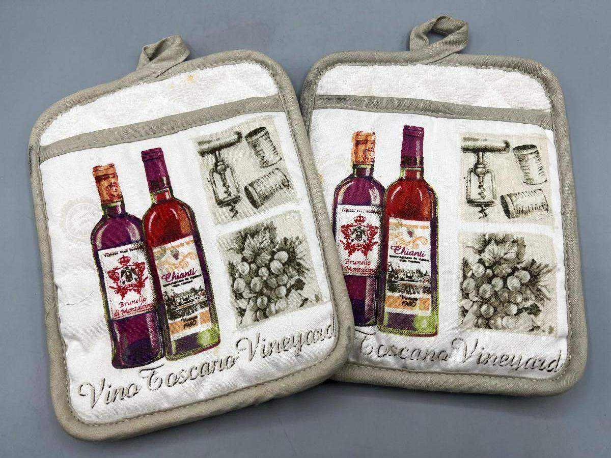 Pair of Vino Toscano Vineyard Wine Themed Square Oven Mitts