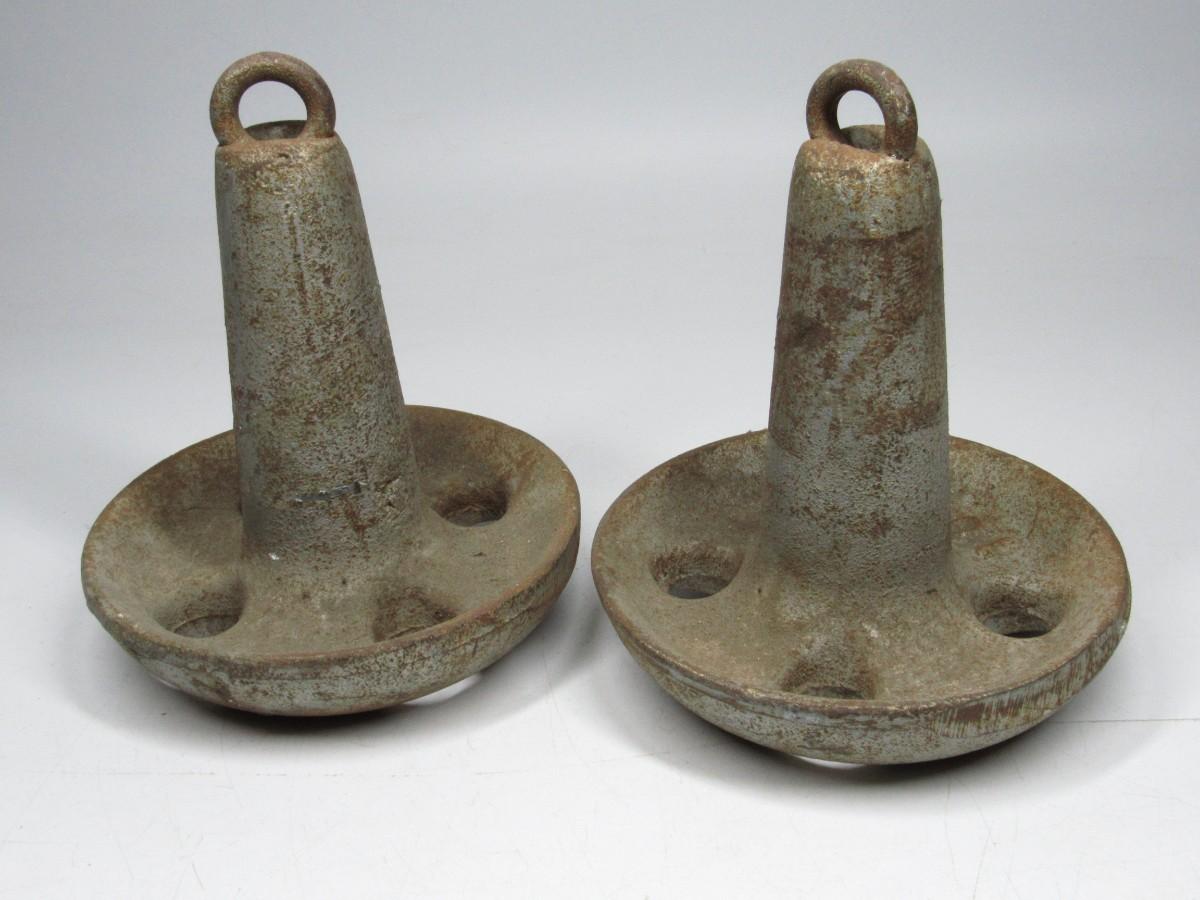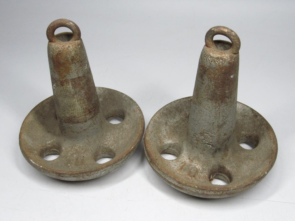Pair of Vintage 10lb Cast Iron Mushroom Boat River Fishing Lake Anchors