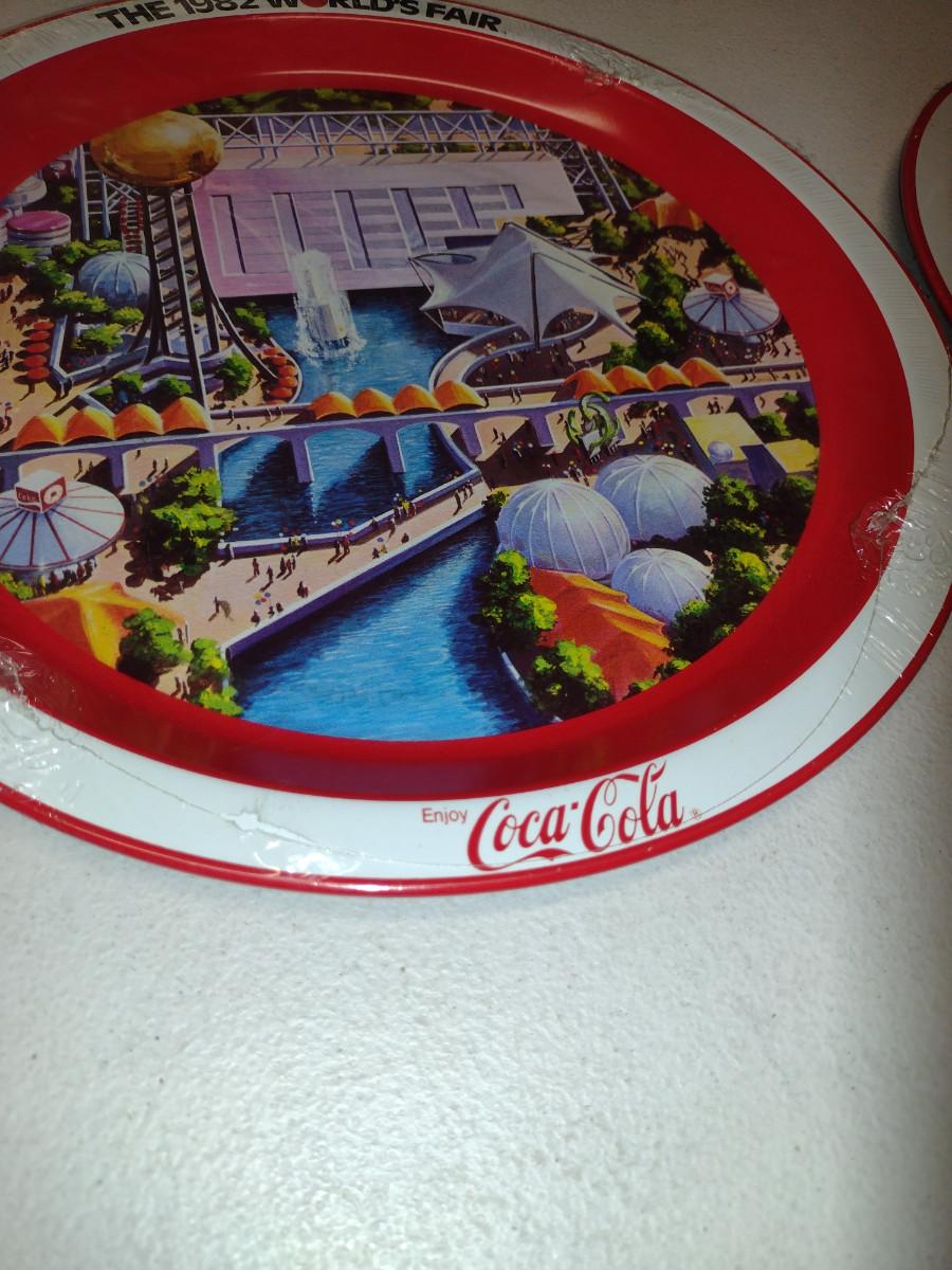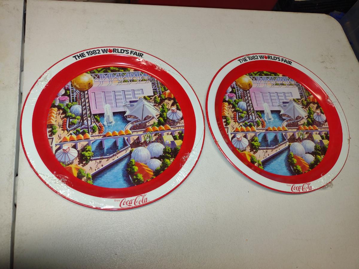Pair of Vintage 1982 World's Fair Coca Cola Metal Trays- New in Package