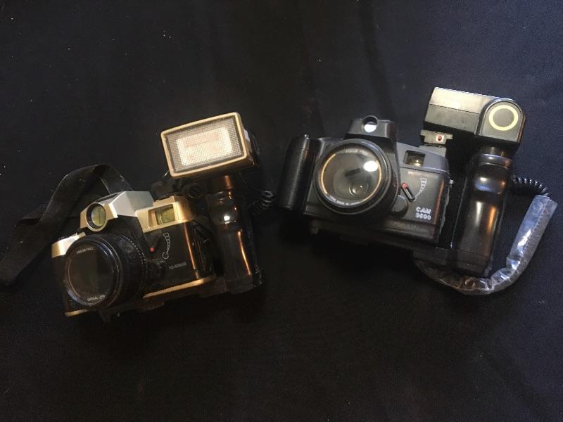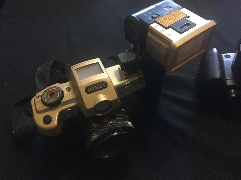 Pair of vintage 35mm cameras with MITSUBA TC-5000D and CAM 9600 models