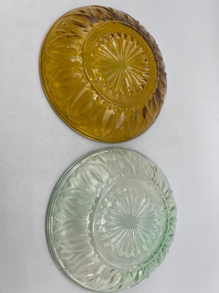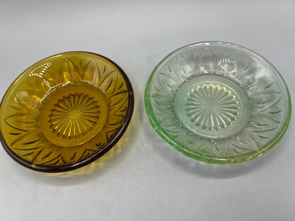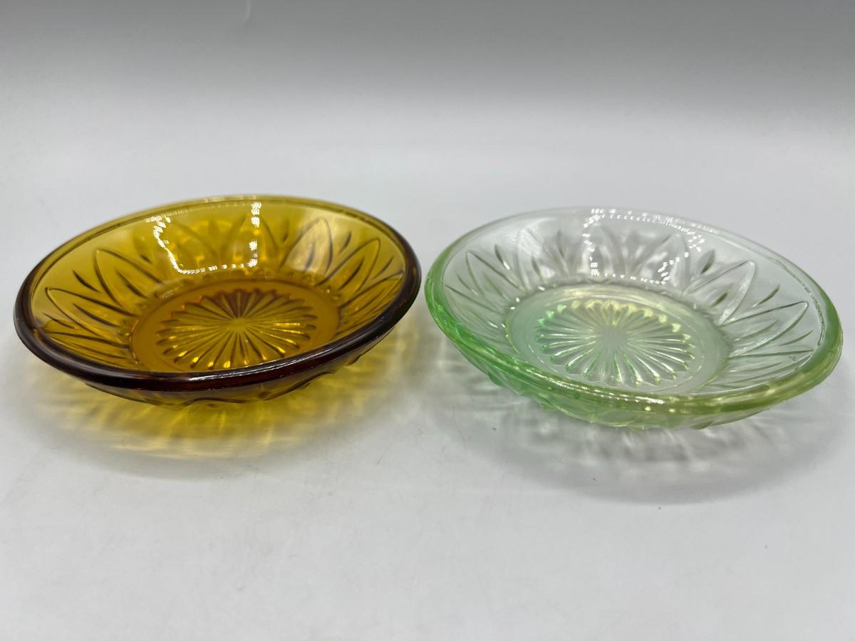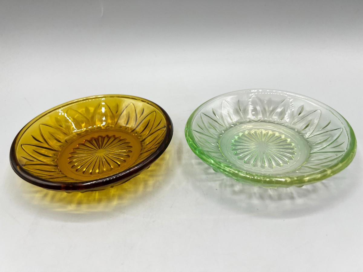 Pair of Vintage Amber & Green Colored Clear Glass Serving Tea Dishes