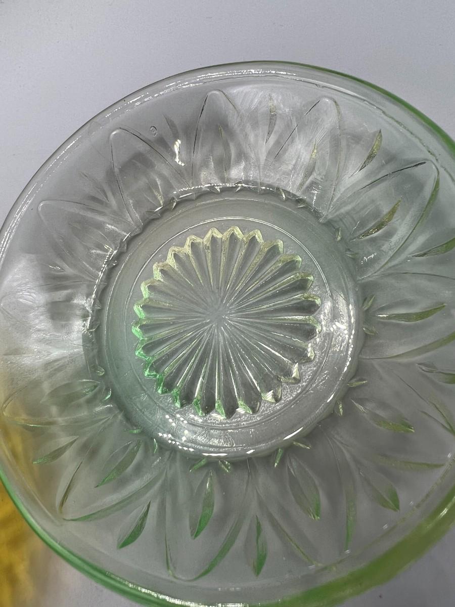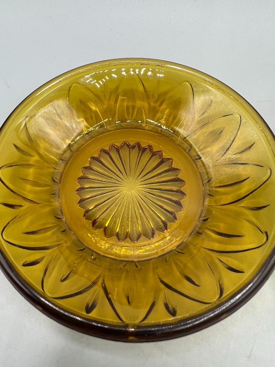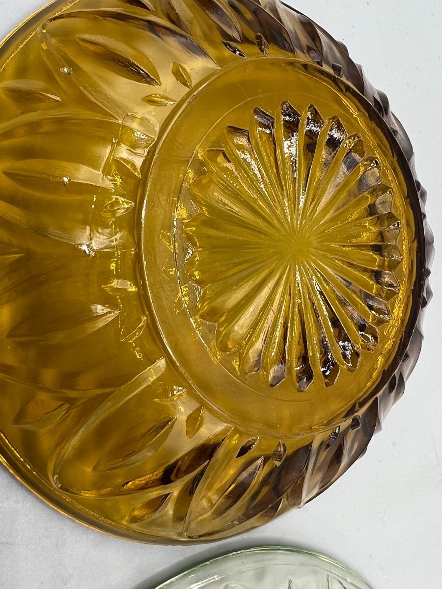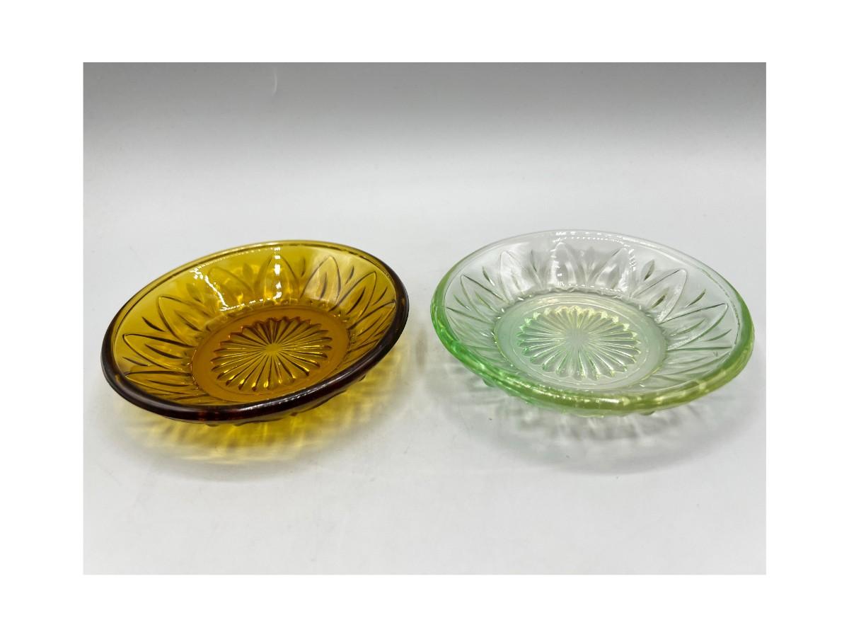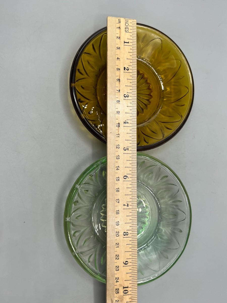 Pair of Vintage Amber & Green Colored Clear Glass Serving Tea Dishes