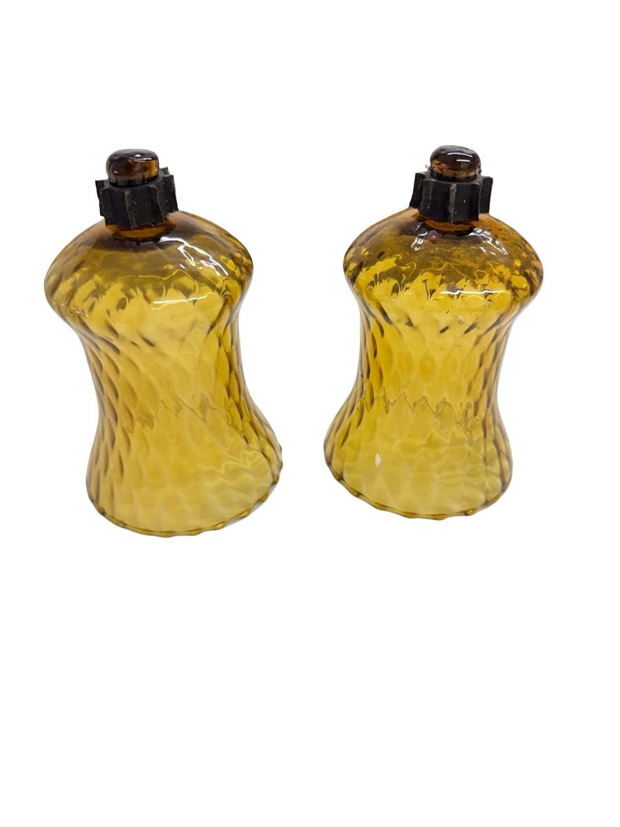 Pair of Vintage Amber Swirl Glass Peg Base Insert for Candle Holders