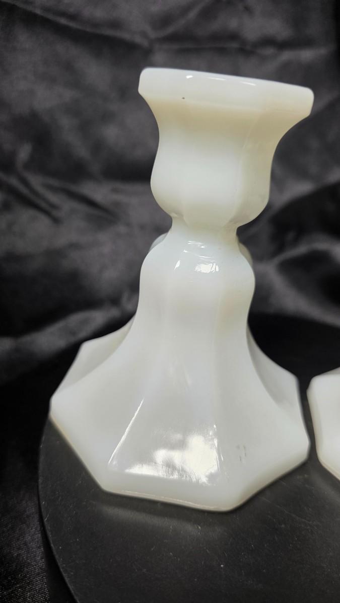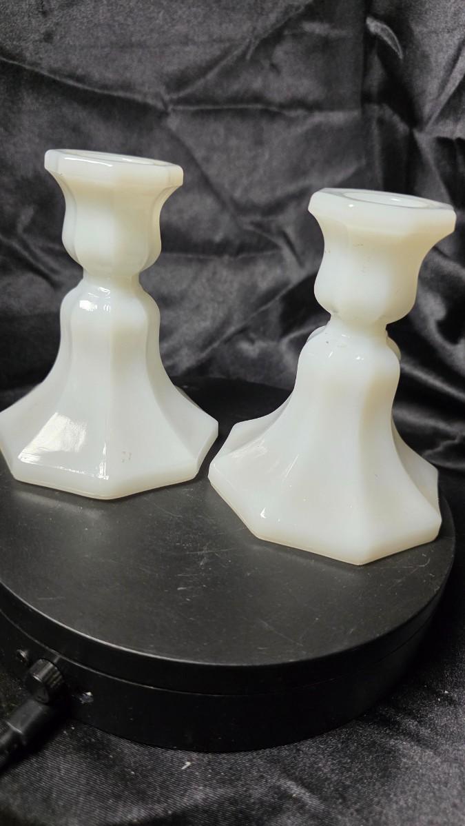 Pair of Vintage Anchor Hocking Milk Glass Taper Candle Holders