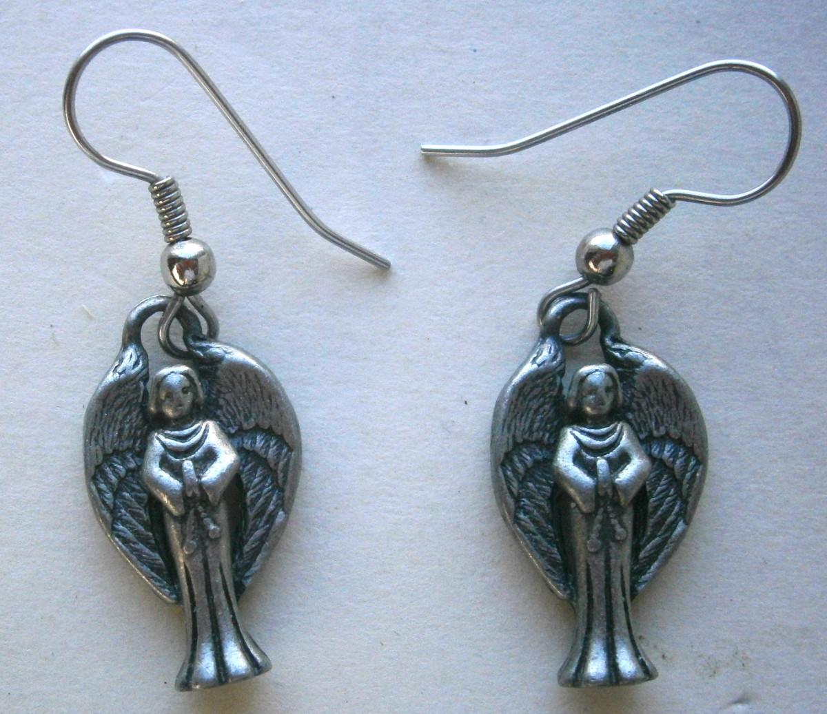 Pair of Vintage Angel Earrings, 1 1/2 in. tall including fasteners, silver toned metal