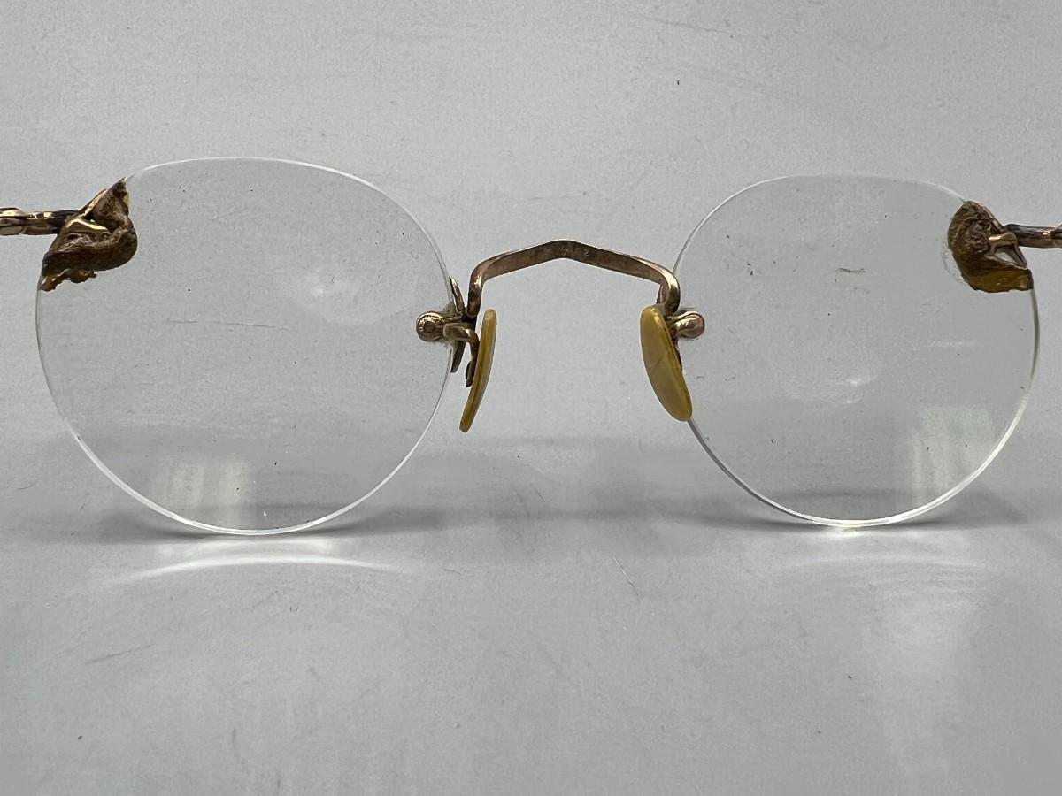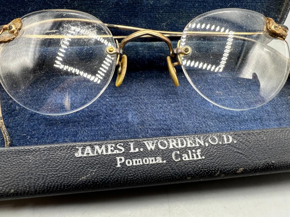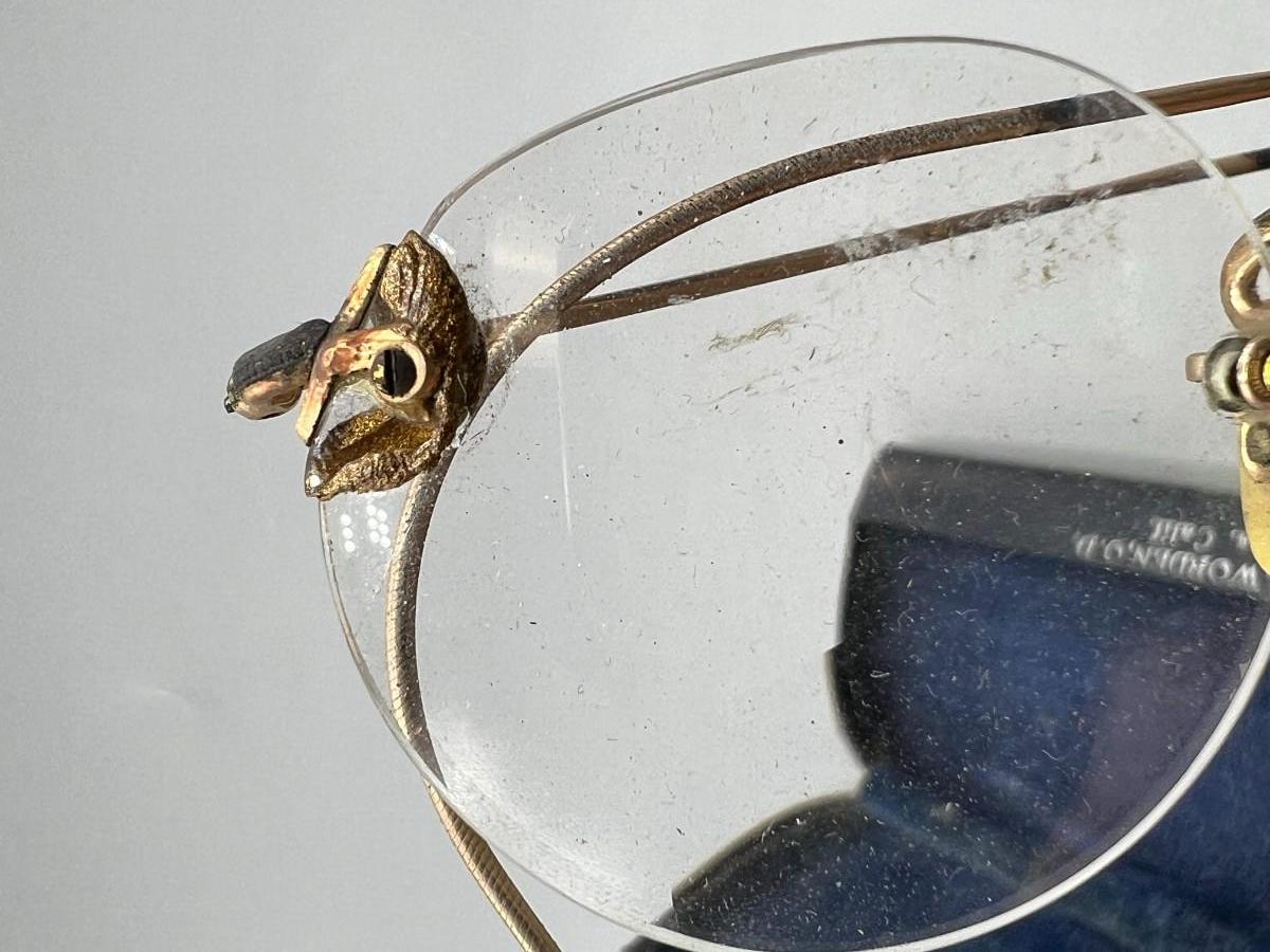 Pair of Vintage Antique Thin Gold Tone Wire Framed Eyeglasses with Glasses Case