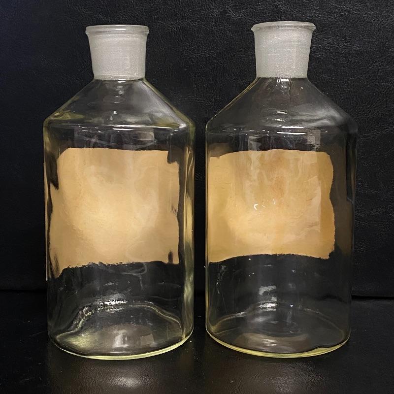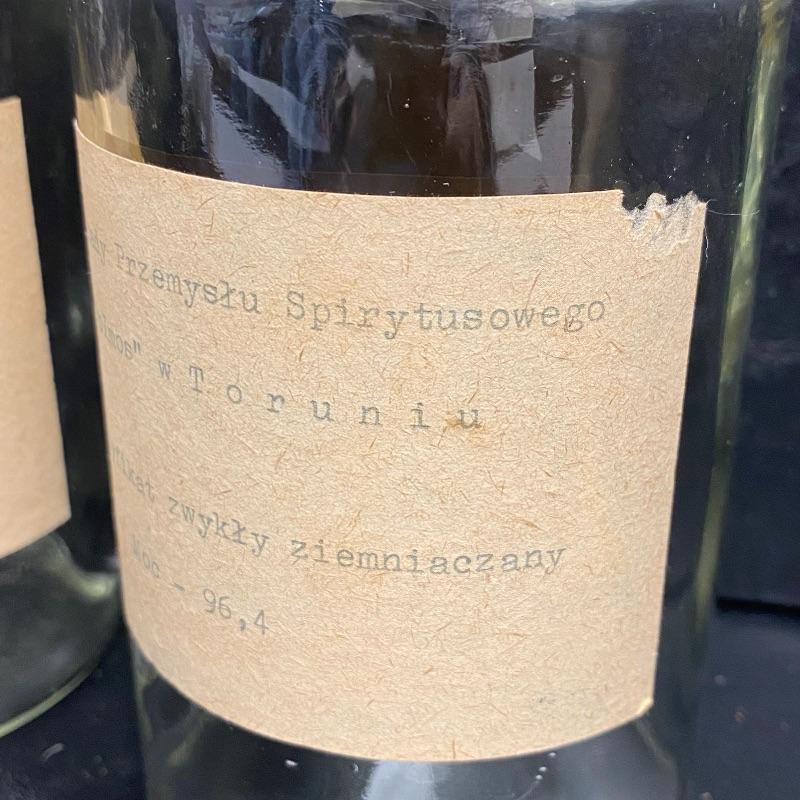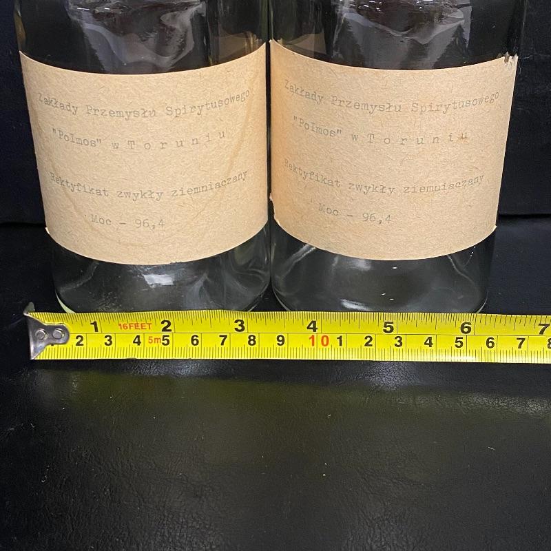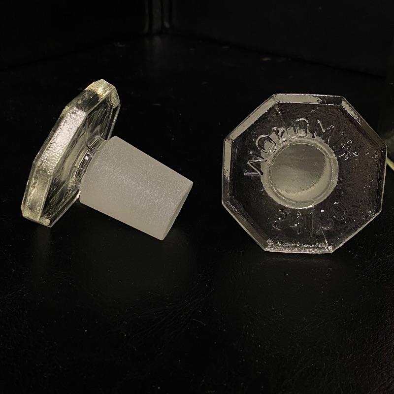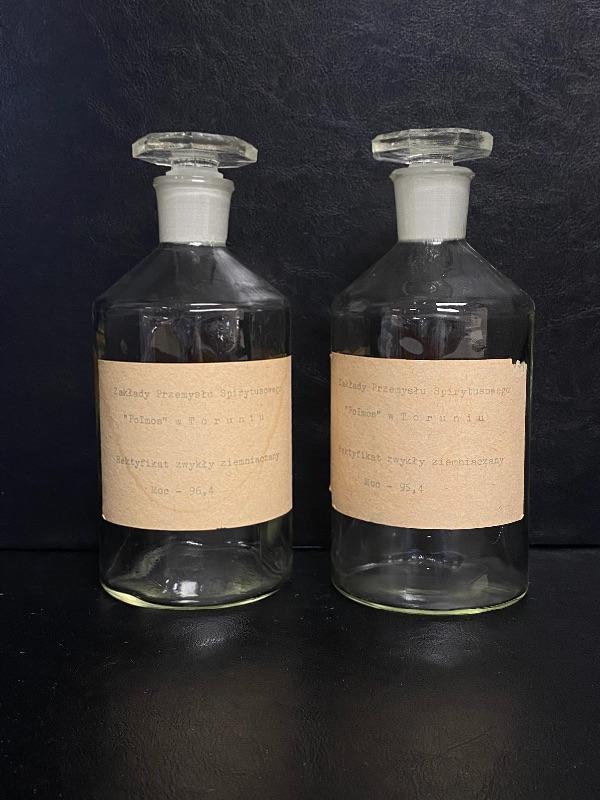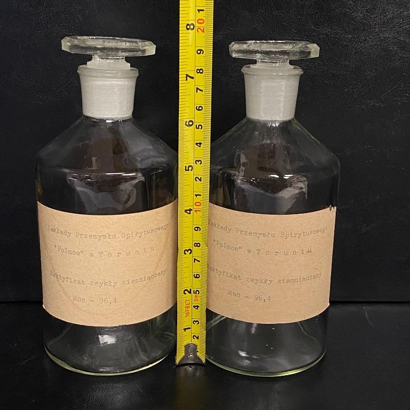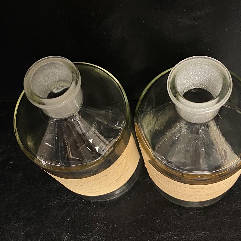 Kraft paper labels on front / Glass Caps - no chips / some wear in labels and water staining - see photo
