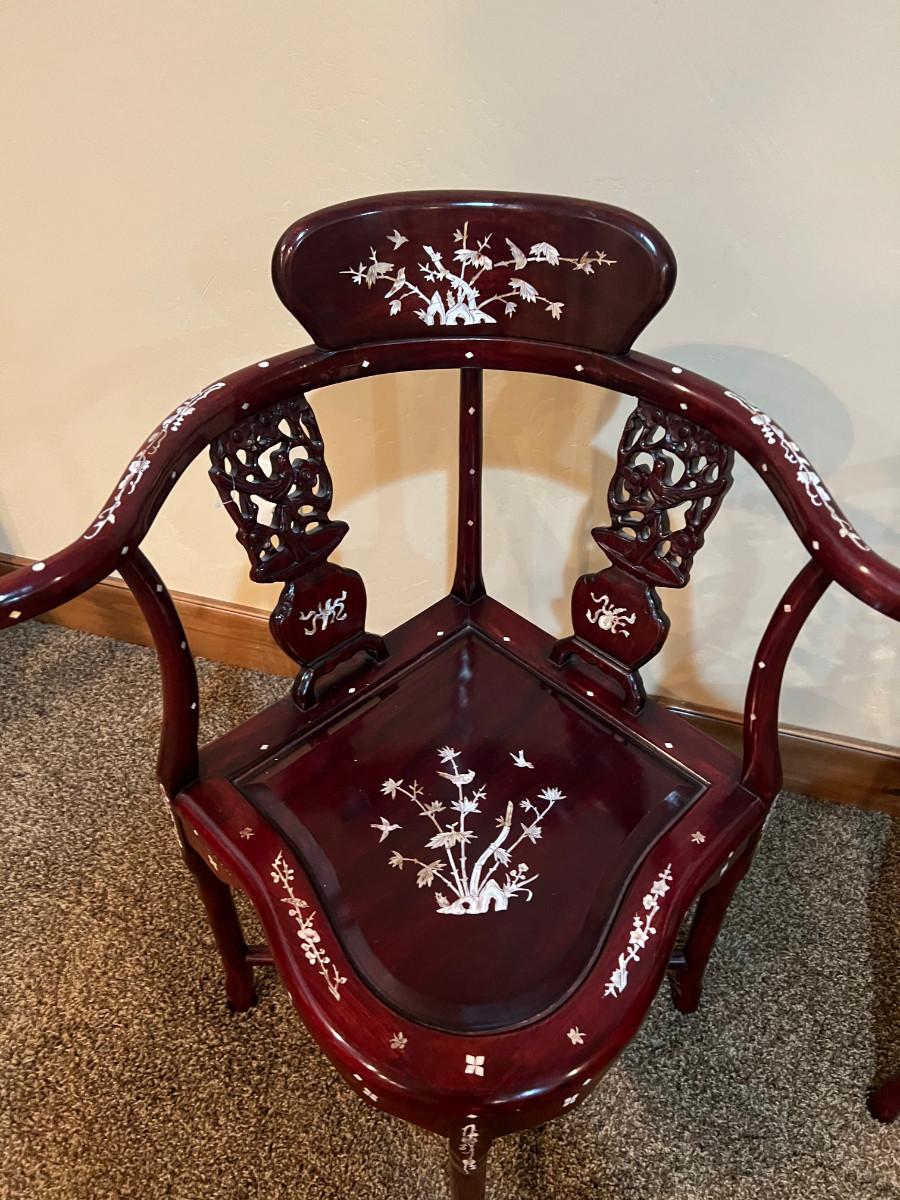 Pair of Vintage Asian Mother of Pearl Inlaid Corner Chairs Rosewood