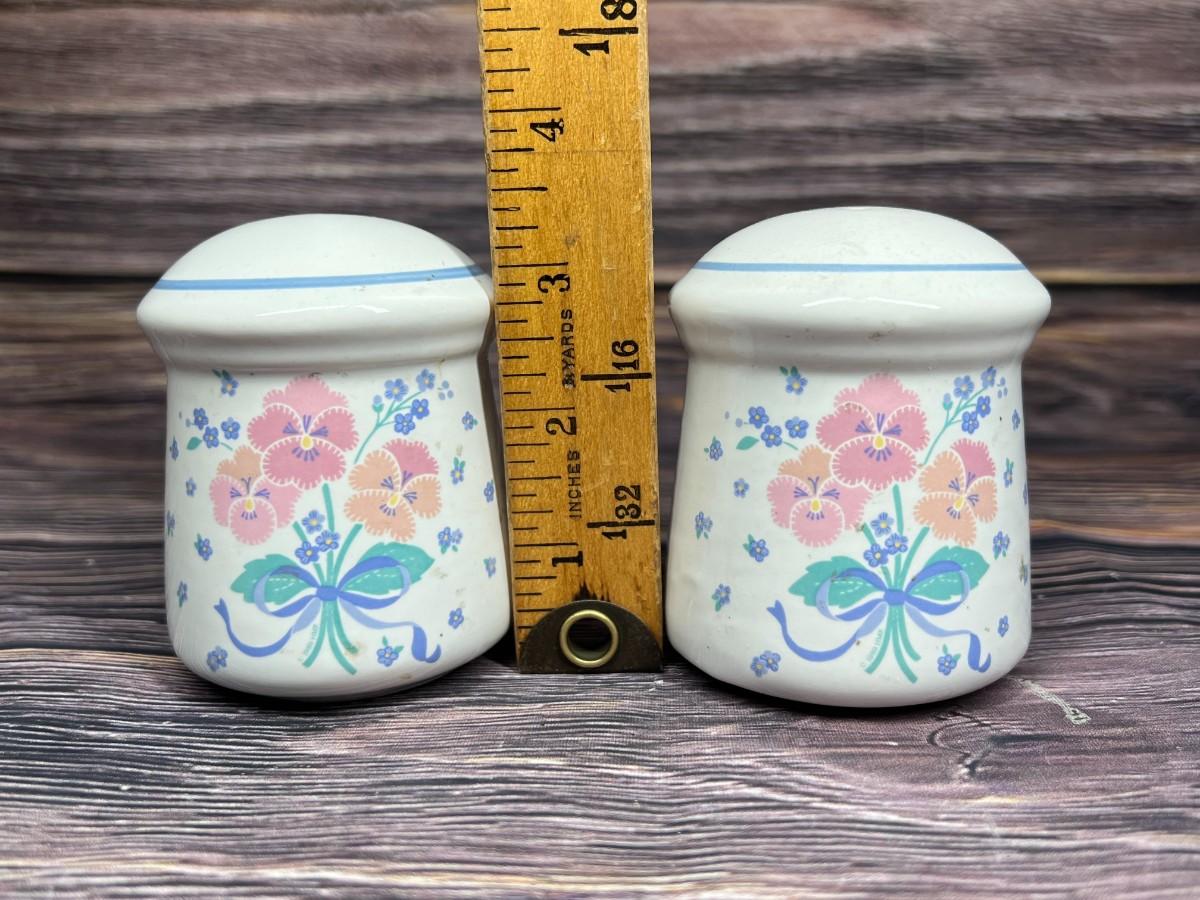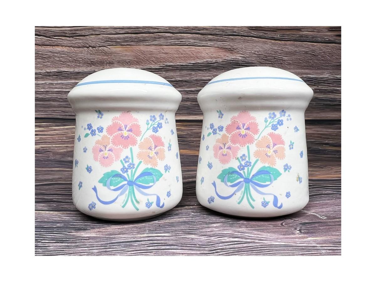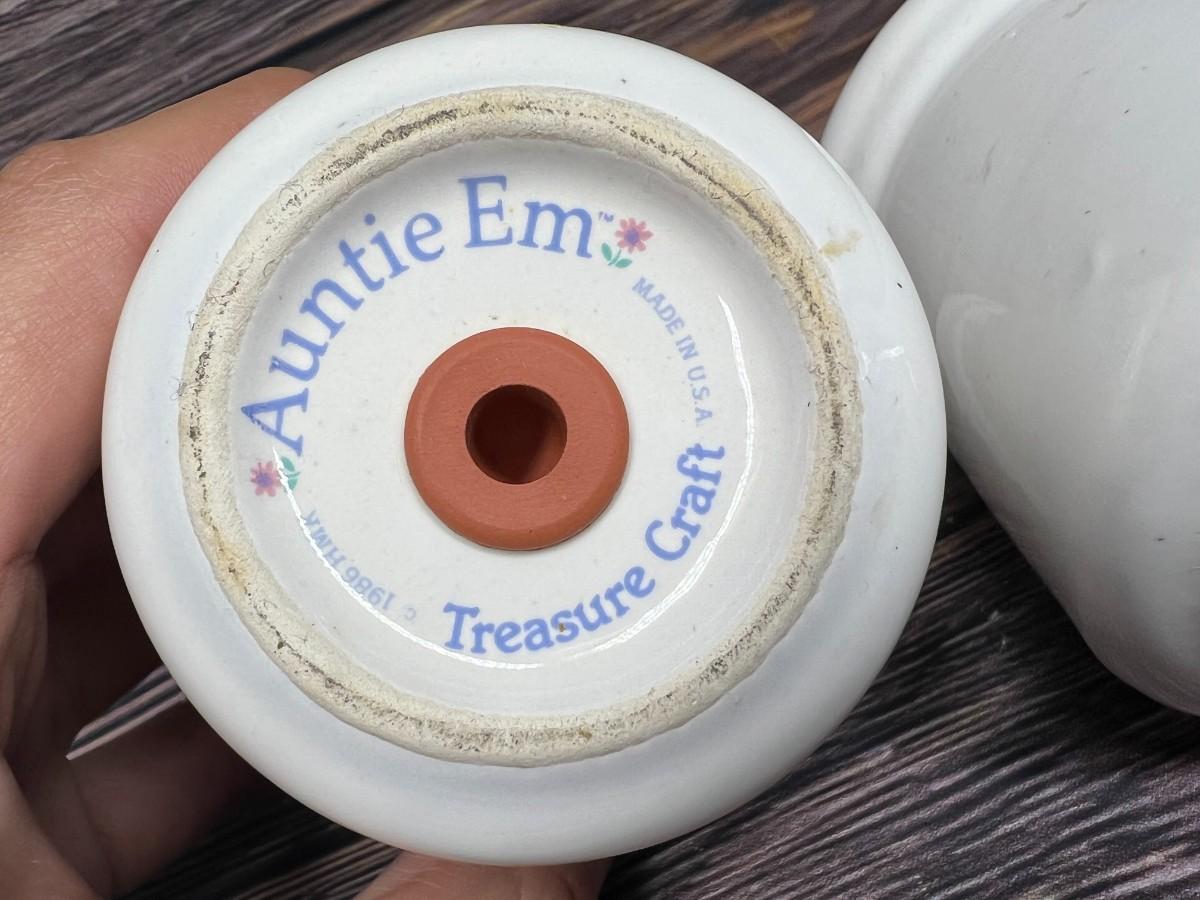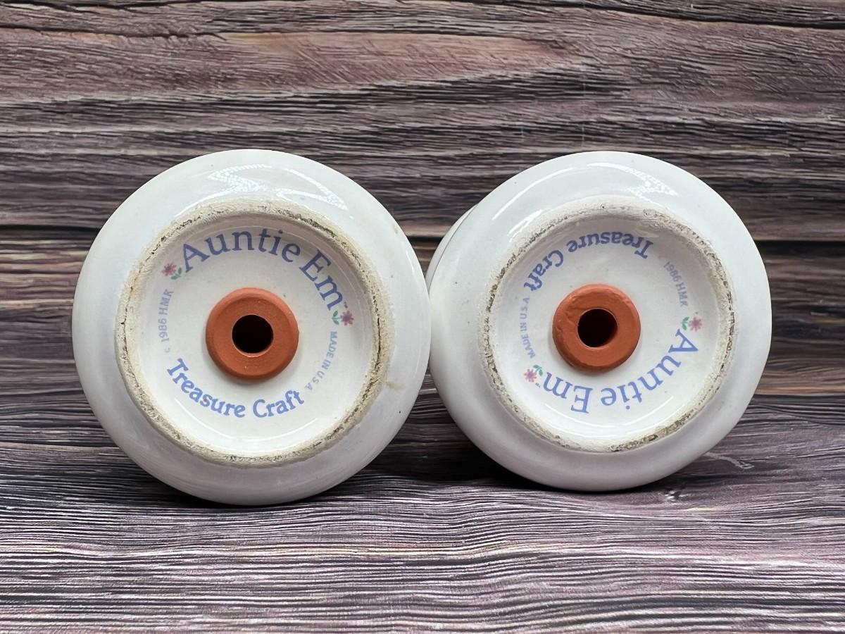 Pair of Vintage Auntie Em Treasure Craft HMK Flower Salt & Pepper Shakers, there are no significant cracks or chips to either of the shakers and is in good vintage condition. Check pictures for more details and for sizin.