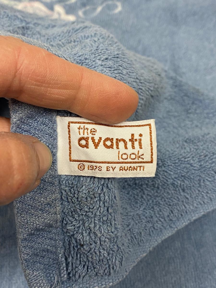 Pair of Vintage Avanti Rose Embroidered Blue Bath Hand Towels